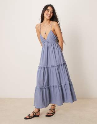 ASOS DESIGN CRINKLE CAMI MAXI DRESS IN BOYFRIEND BLUE