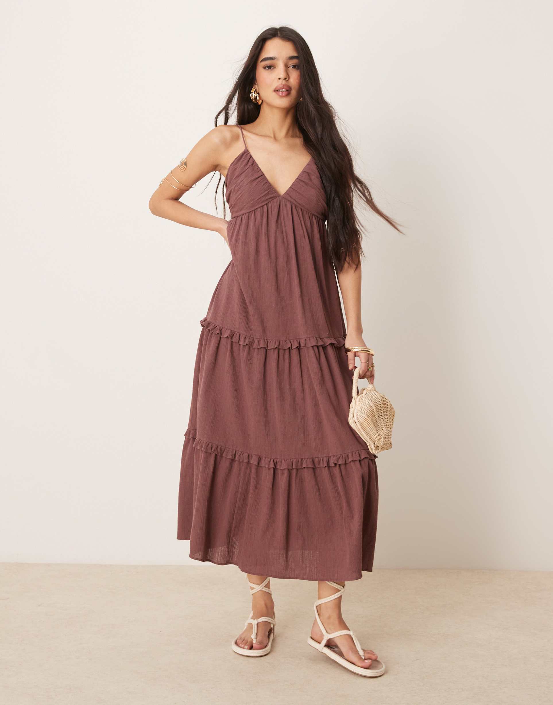 ASOS DESIGN CRINKLE CAMI MAXI DRESS IN WASHED BROWN