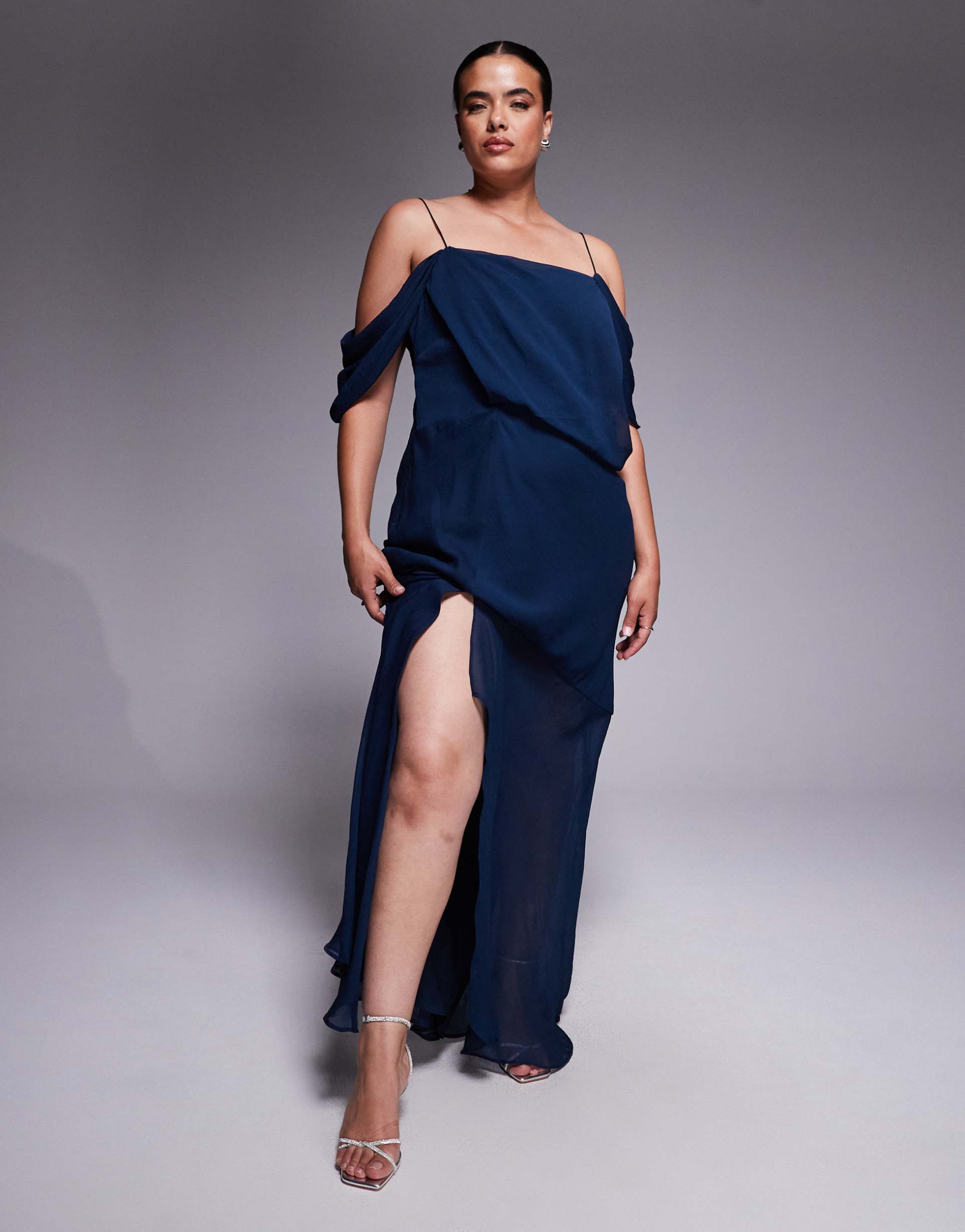 ASOS DESIGN CURVE DRAPE FRONT CHIFFON MAXI DRESS IN NAVY