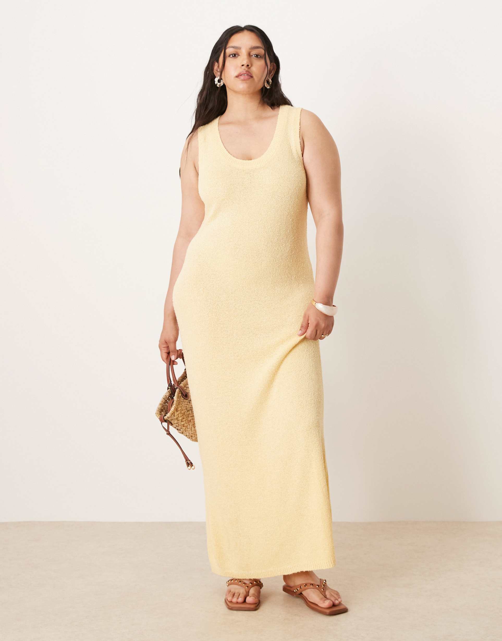 ASOS DESIGN CURVE KNIT SCOOP NECK TEXTURED MIDAXI DRESS IN BUTTERMILK