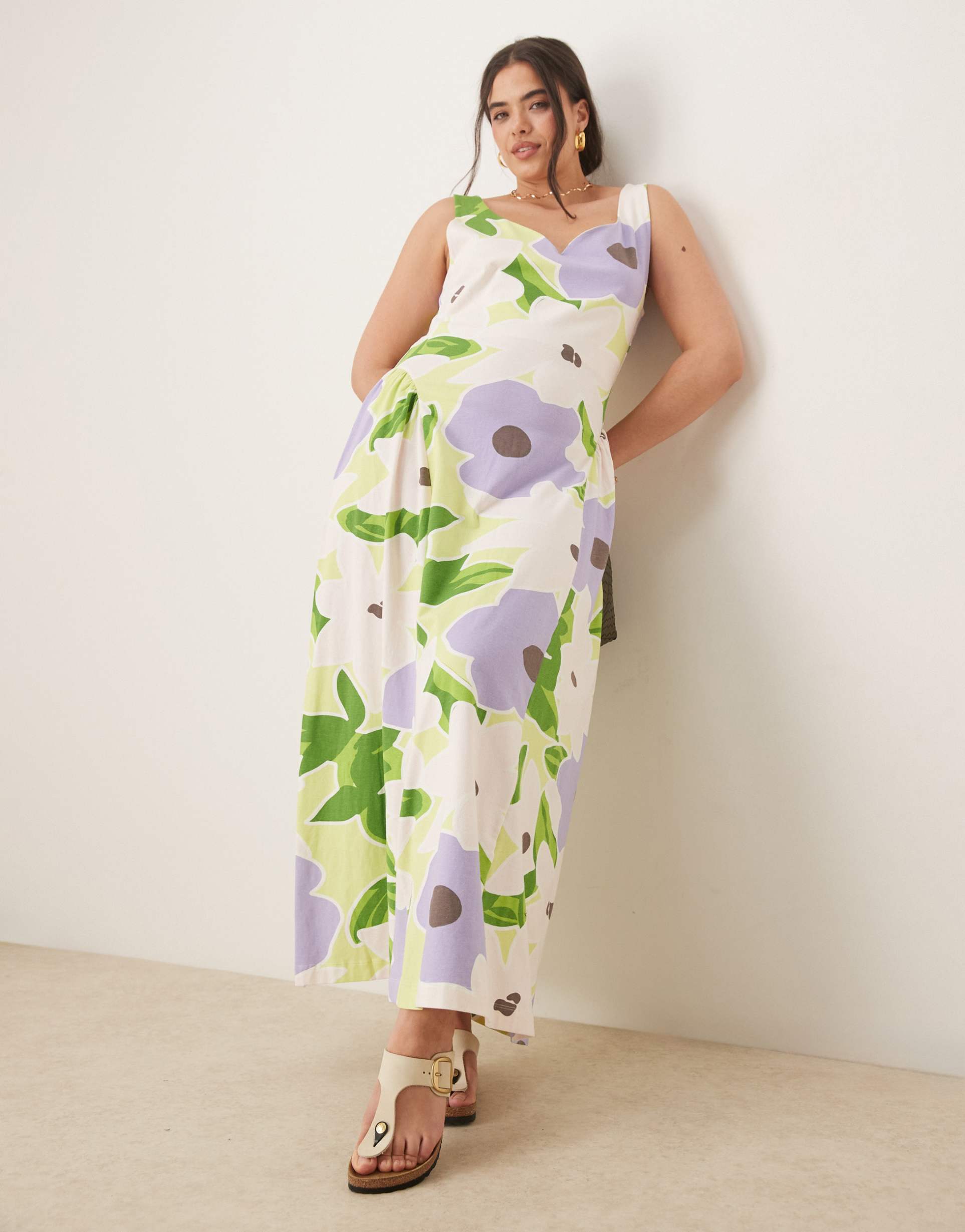 ASOS DESIGN CURVE SWEETHEART GODET MIDI DRESS IN FLORAL PRINT