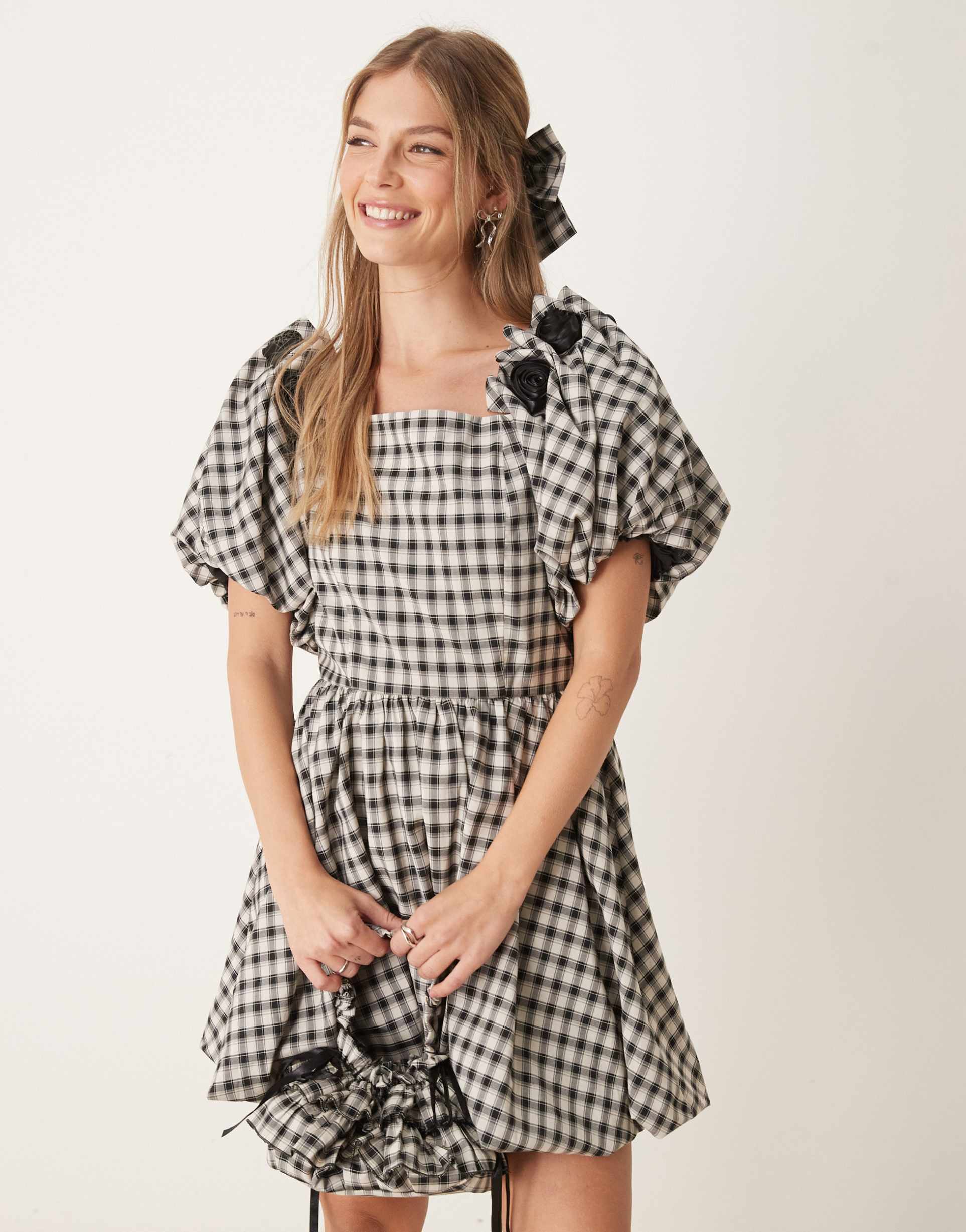 DREAM SISTER JANE CHECK PRINT MINI DRESS IN BLACK AND WHITE - PART OF A SET