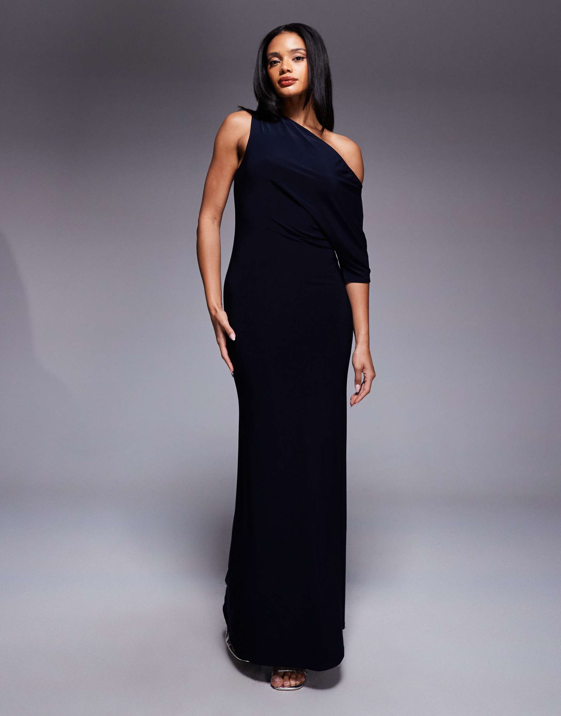 ASOS DESIGN DRAPED CAPE ONE SHOULDER MAXI DRESS IN NAVY