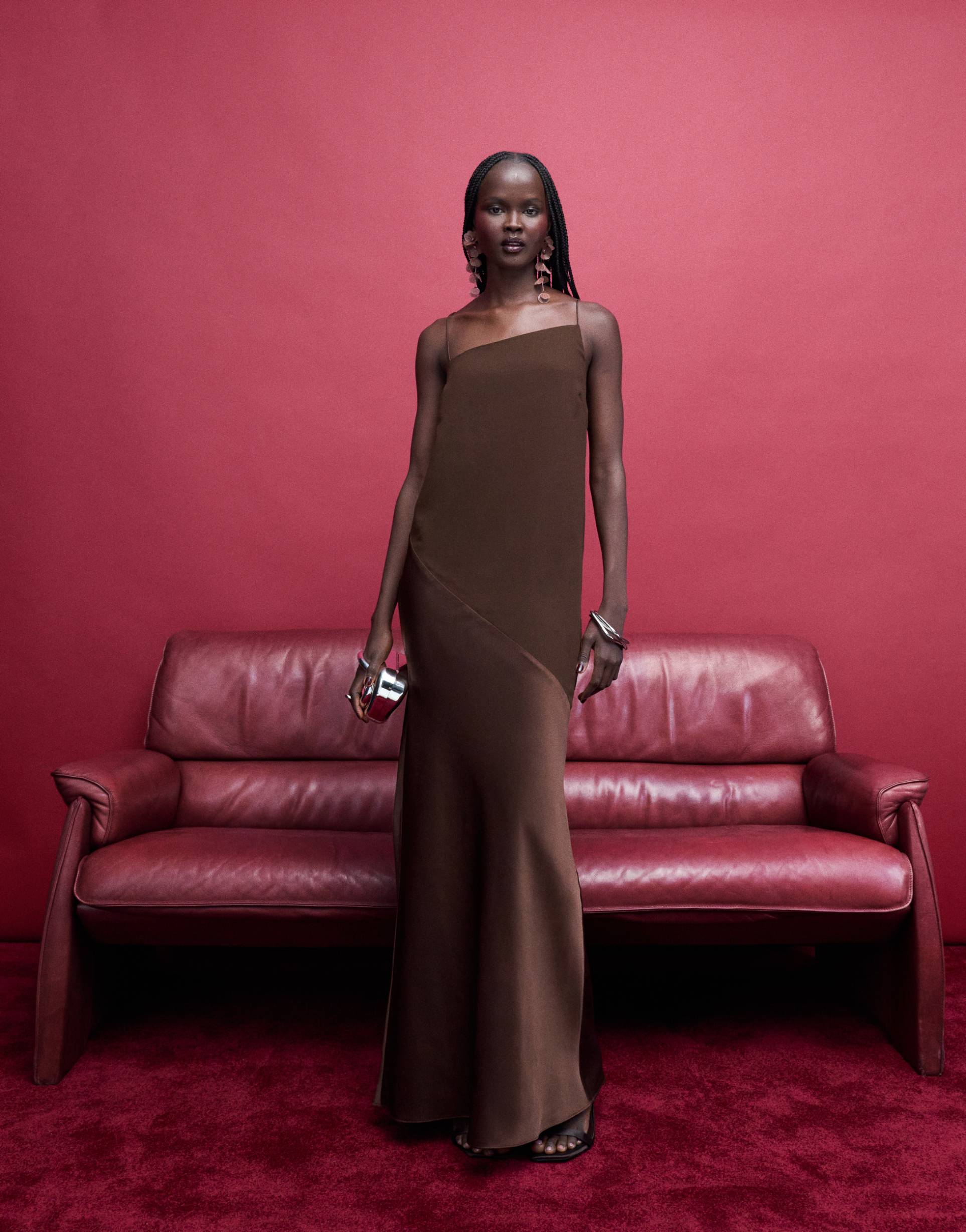 chocolate satin maxi dress