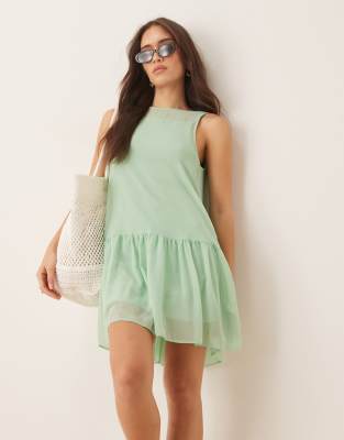 ASOS DESIGN DROP WAIST CHIFFON MINI DRESS IN SAGE