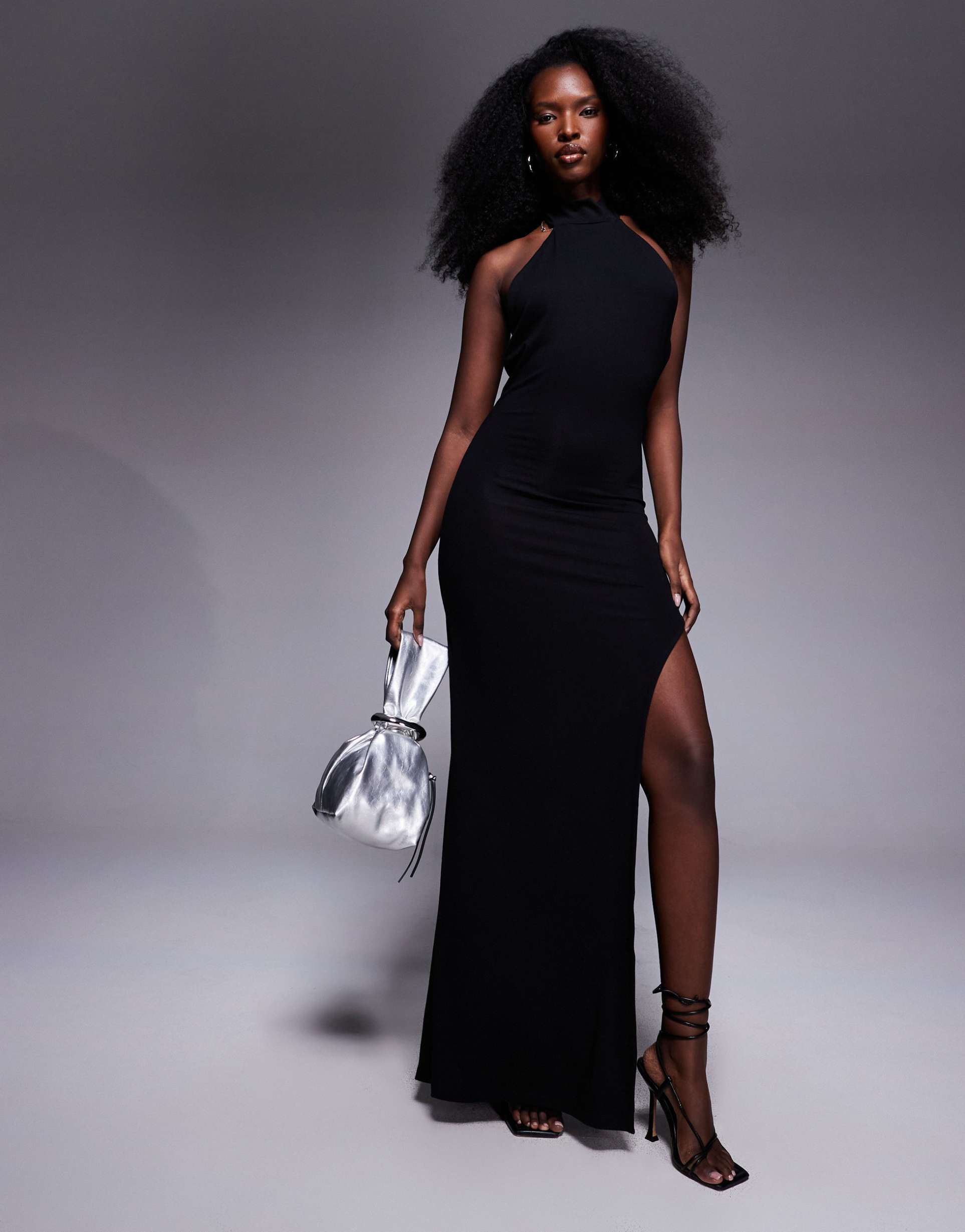 black halter maxi dress