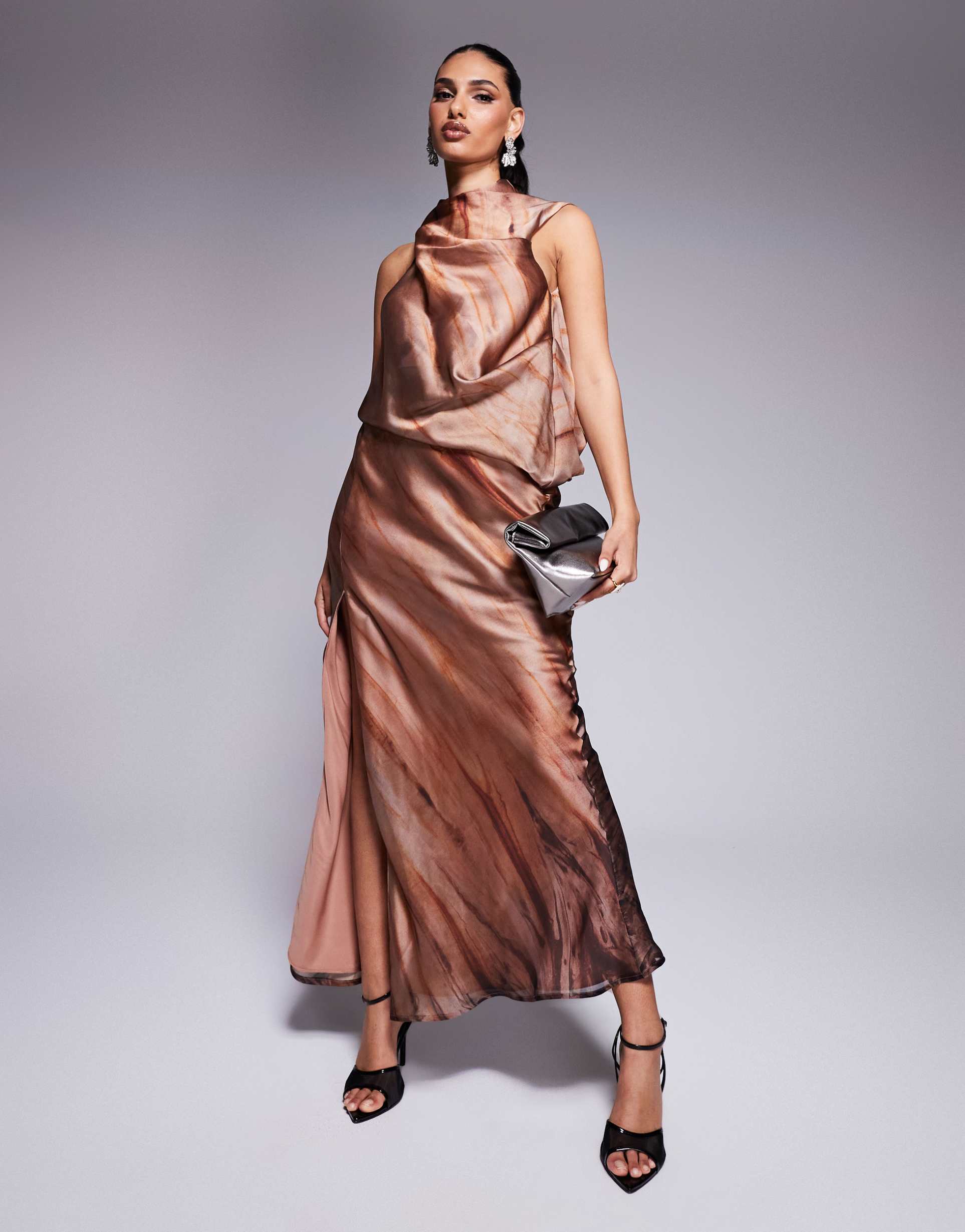 ASOS DESIGN HIGH NECK DRAPE MAXI DRESS IN ABSTRACT PRINT