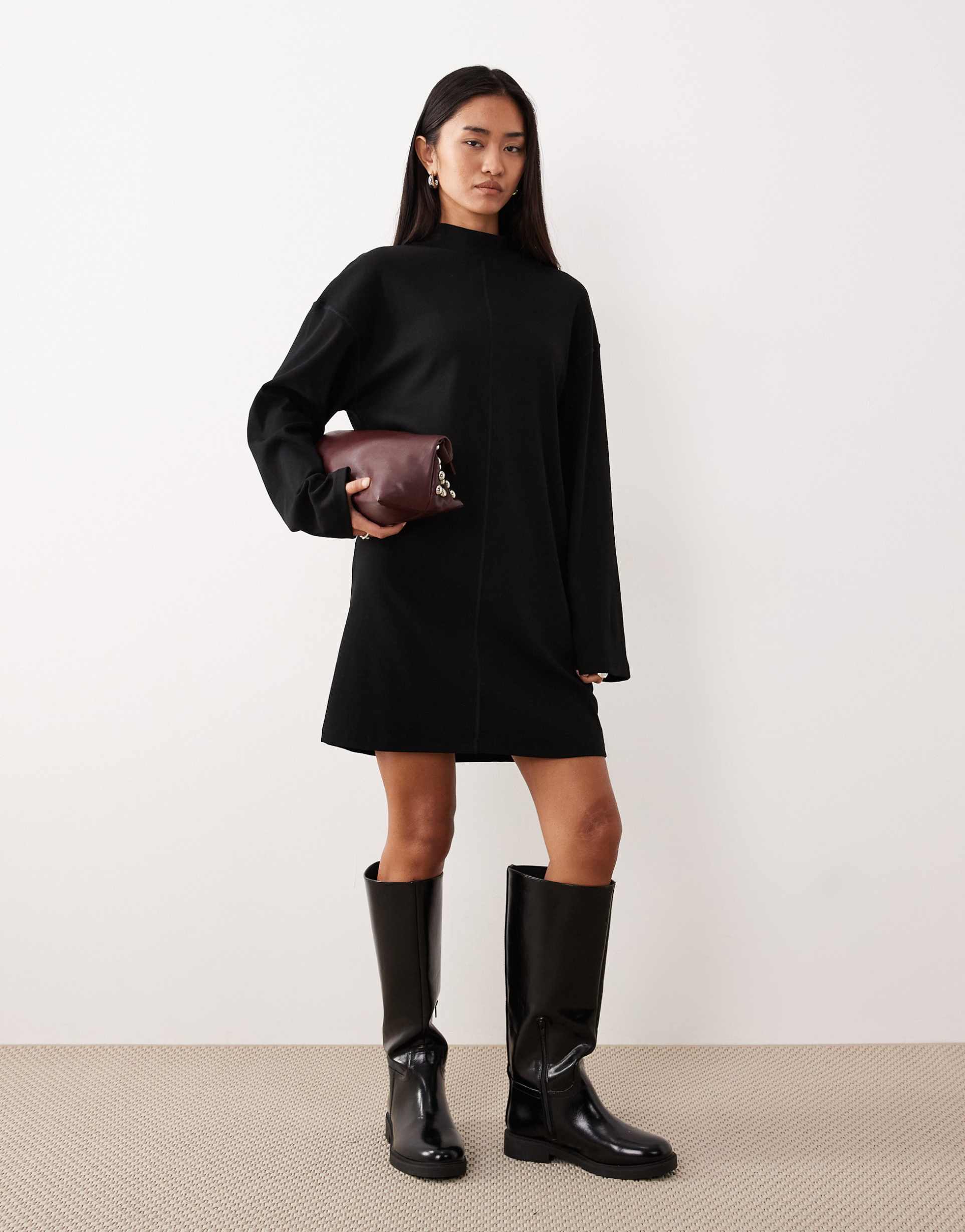 ASOS DESIGN HIGH NECK RIB MINI DRESS WITH CENTER SEAM DETAIL IN BLACK