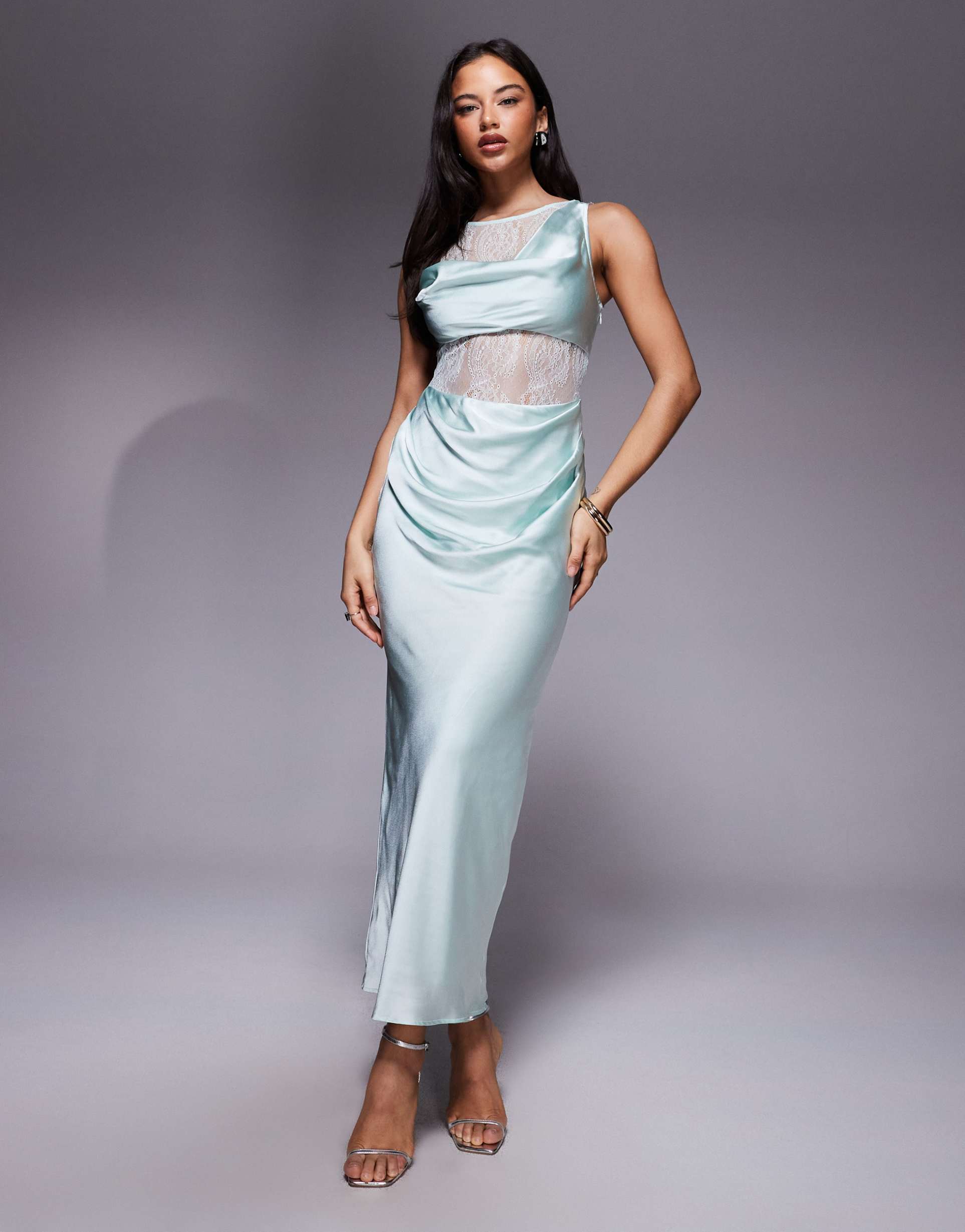 ASOS DESIGN LACE AND WASHED SATIN DRAPE BIAS CUT MAXI DRESS IN PALE BLUE