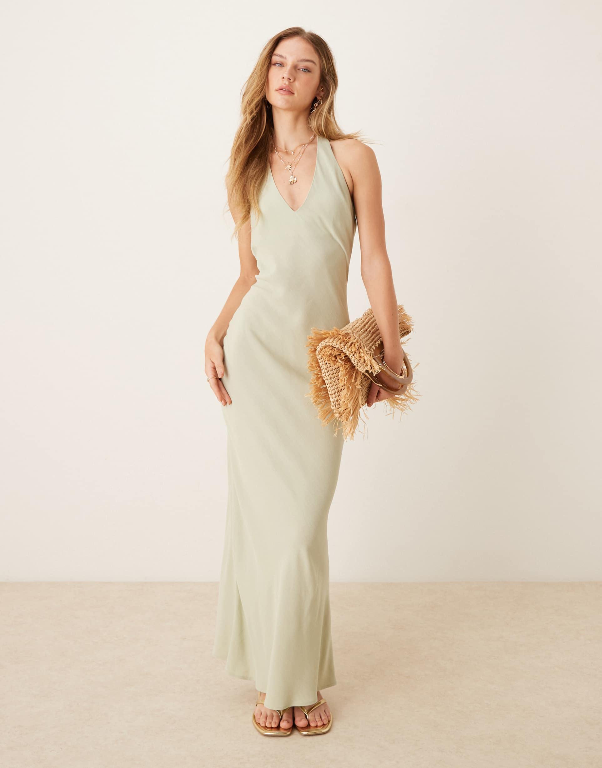 sage green halter maxi dress
