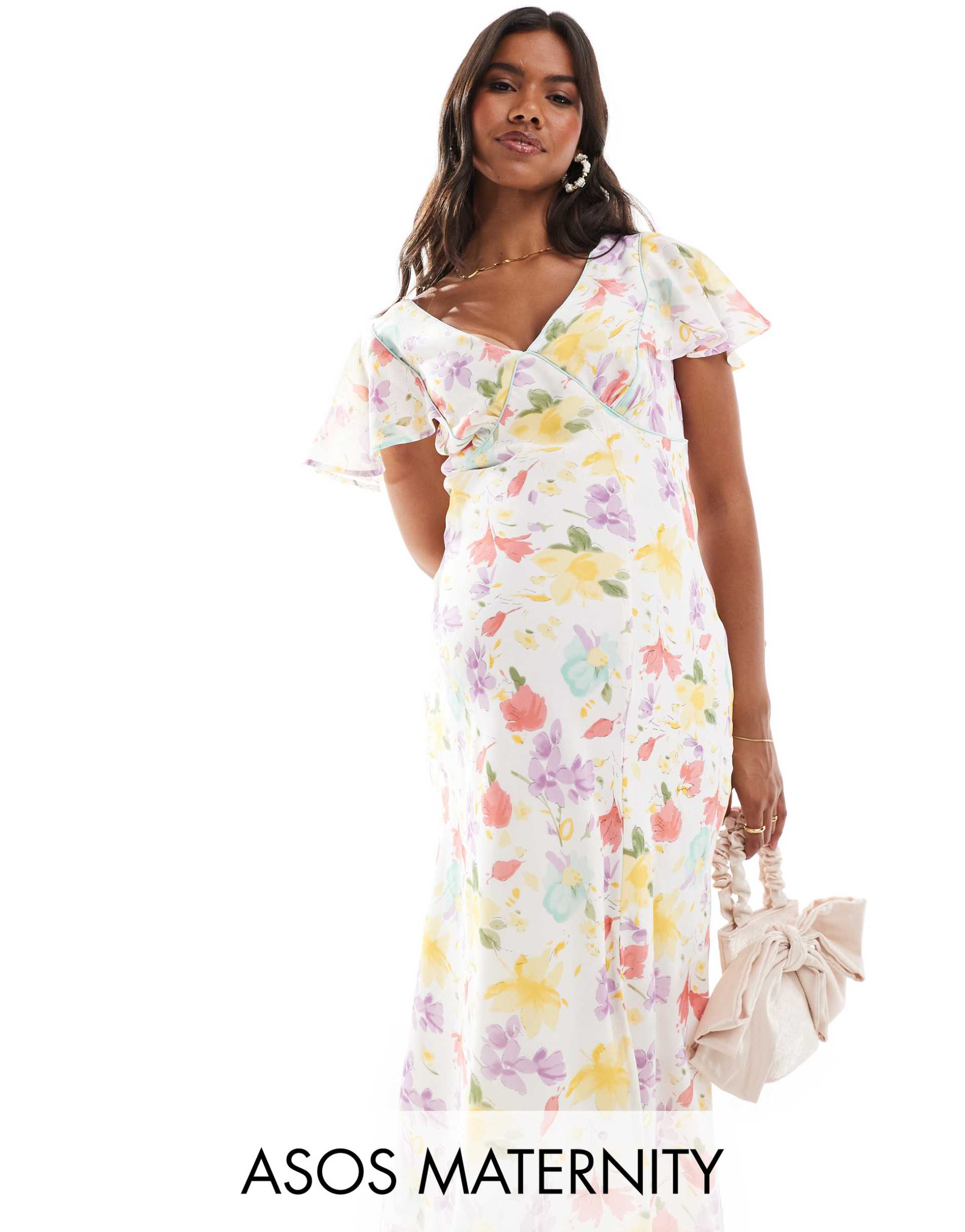 ASOS DESIGN MATERNITY SEAM DETAIL MIDI TEA DRESS IN PASTEL FLORAL PRINT