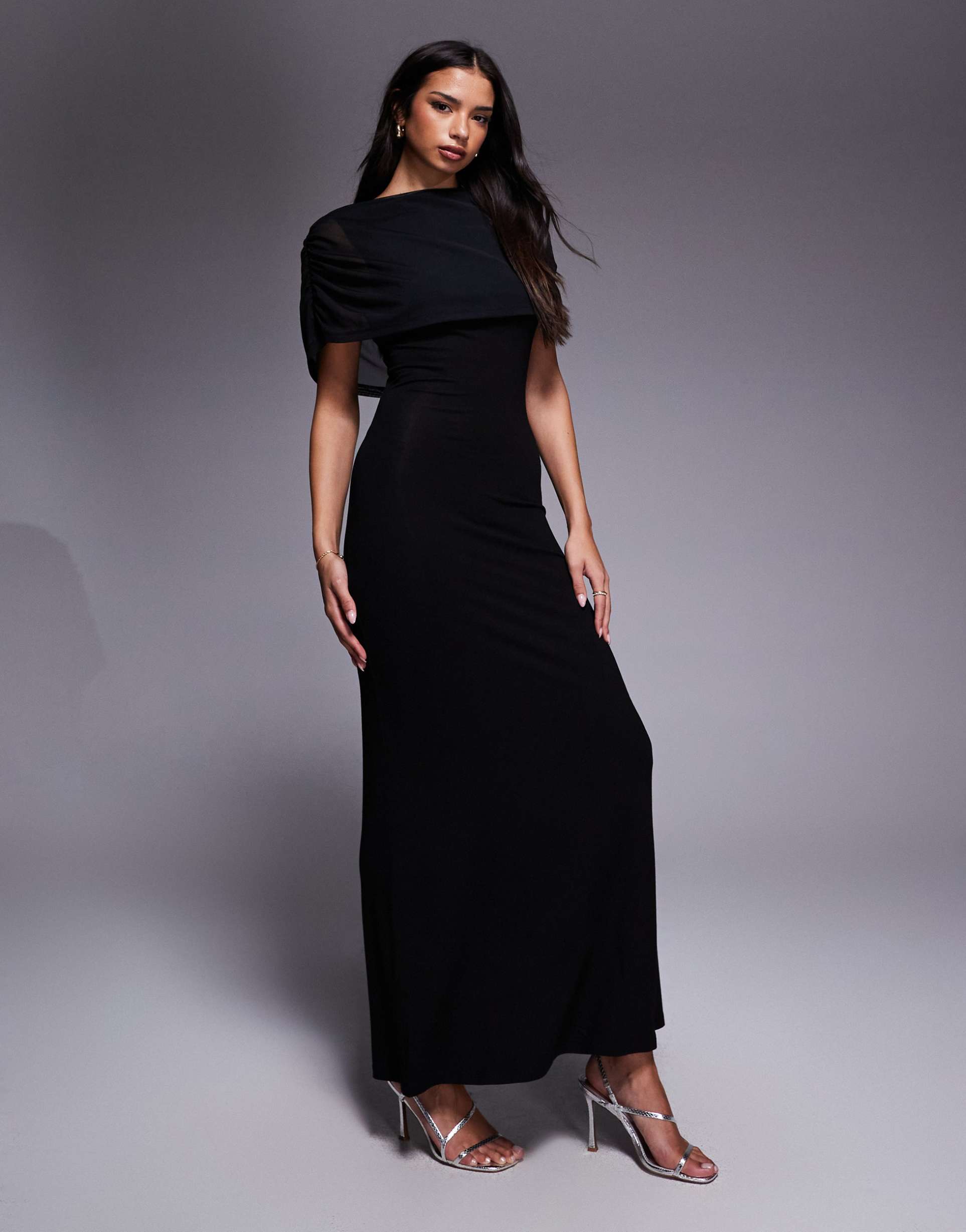 ASOS DESIGN MESH CAPE DETAIL MAXI DRESS IN BLACK