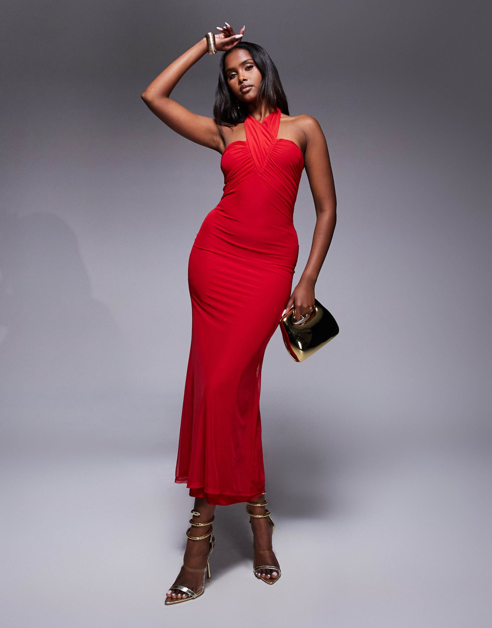 ASOS DESIGN MESH HALTER NECK MAXI DRESS IN RED