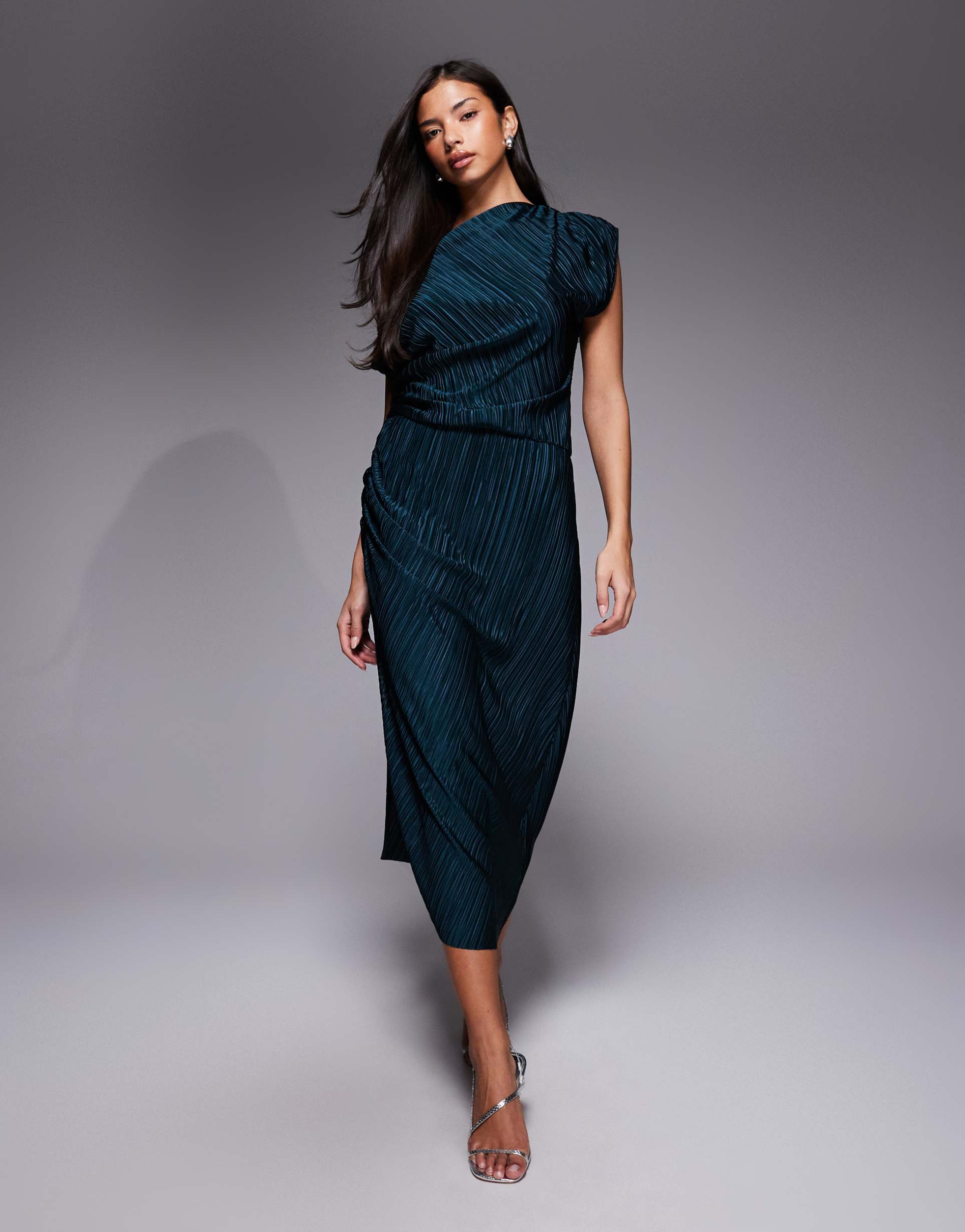 ASOS DESIGN PLISSE RUCHED SIDE MAXI DRESS IN EMERALD