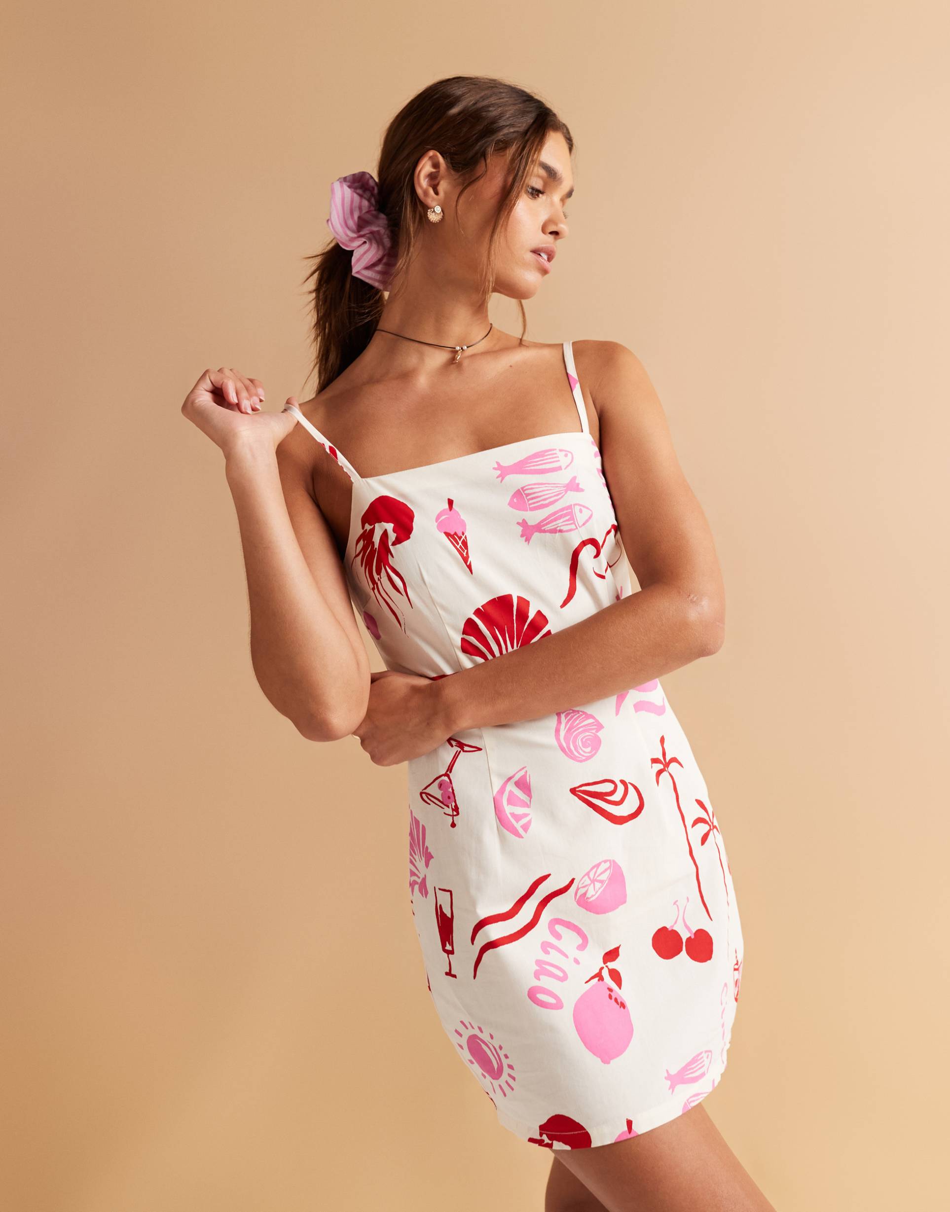 ASOS DESIGN POPLIN CAMI MINI DRESS IN CONVERSATIONAL PRINT - PART OF A SET