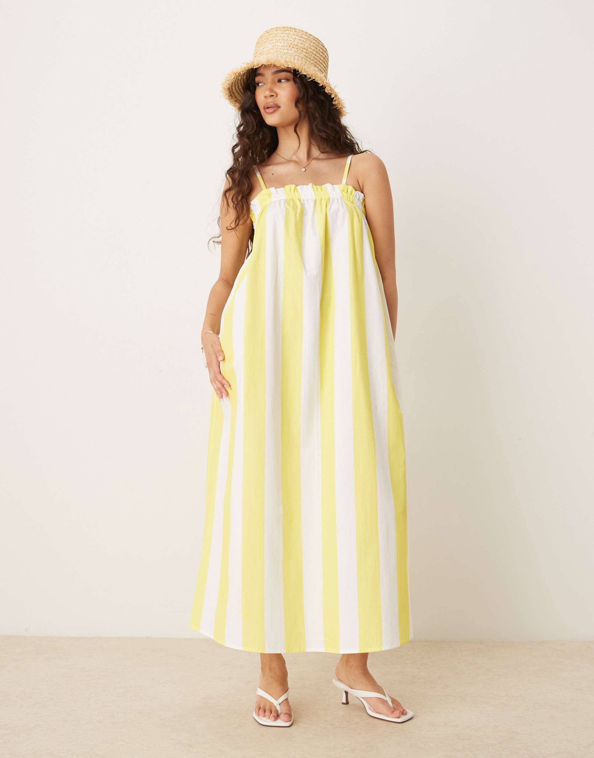 ASOS DESIGN POPLIN TRAPEZE MIDAXI DRESS IN YELLOW STRIPES