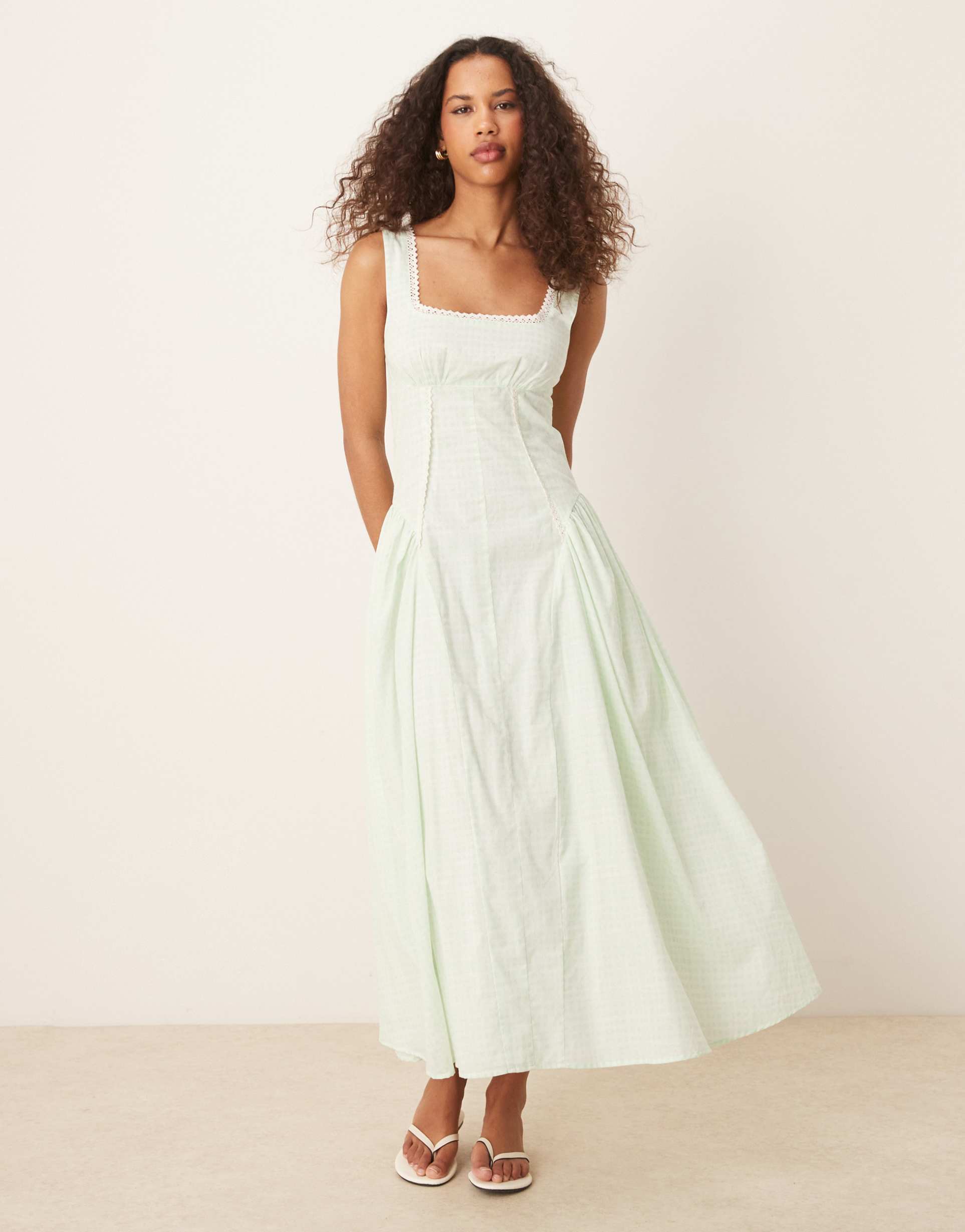 ASOS DESIGN PRAIRIE SQUARE NECK MAXI DRESS WITH DROPPED WAIST IN MINT GINGHAM
