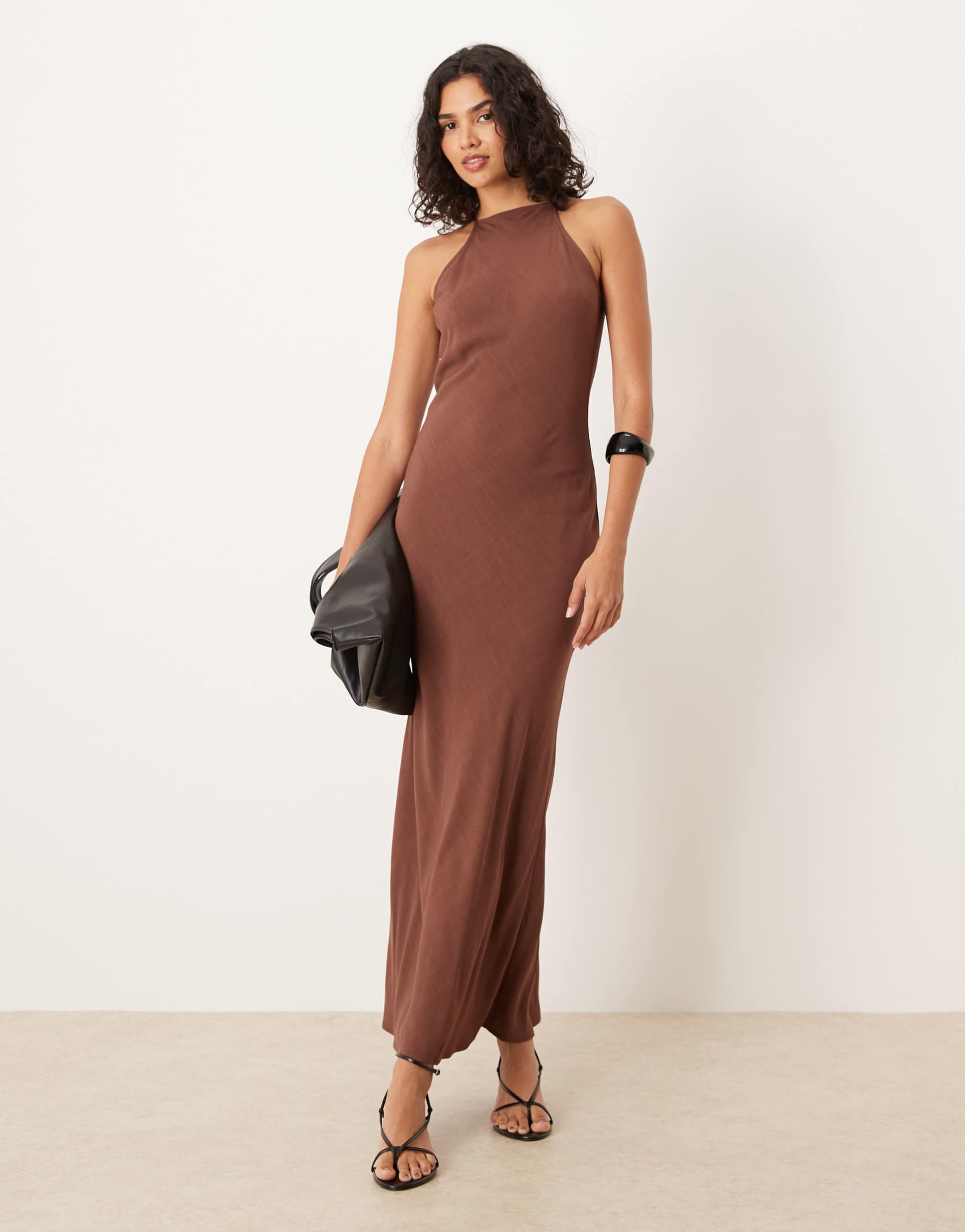 ASOS DESIGN RACER NECK MAXI DRESS IN BROWN