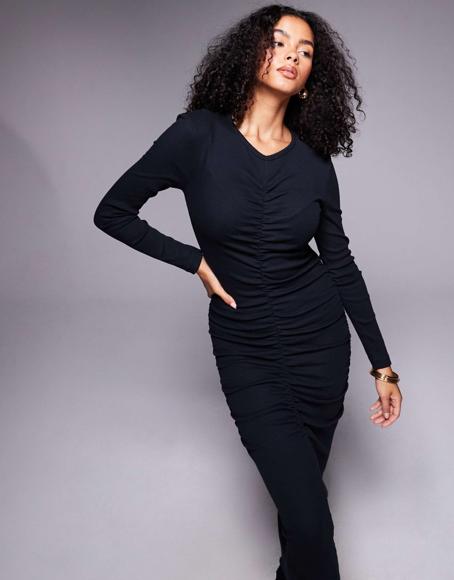 ASOS DESIGN RIBBED RUCHED MINI DRESS IN BLACK