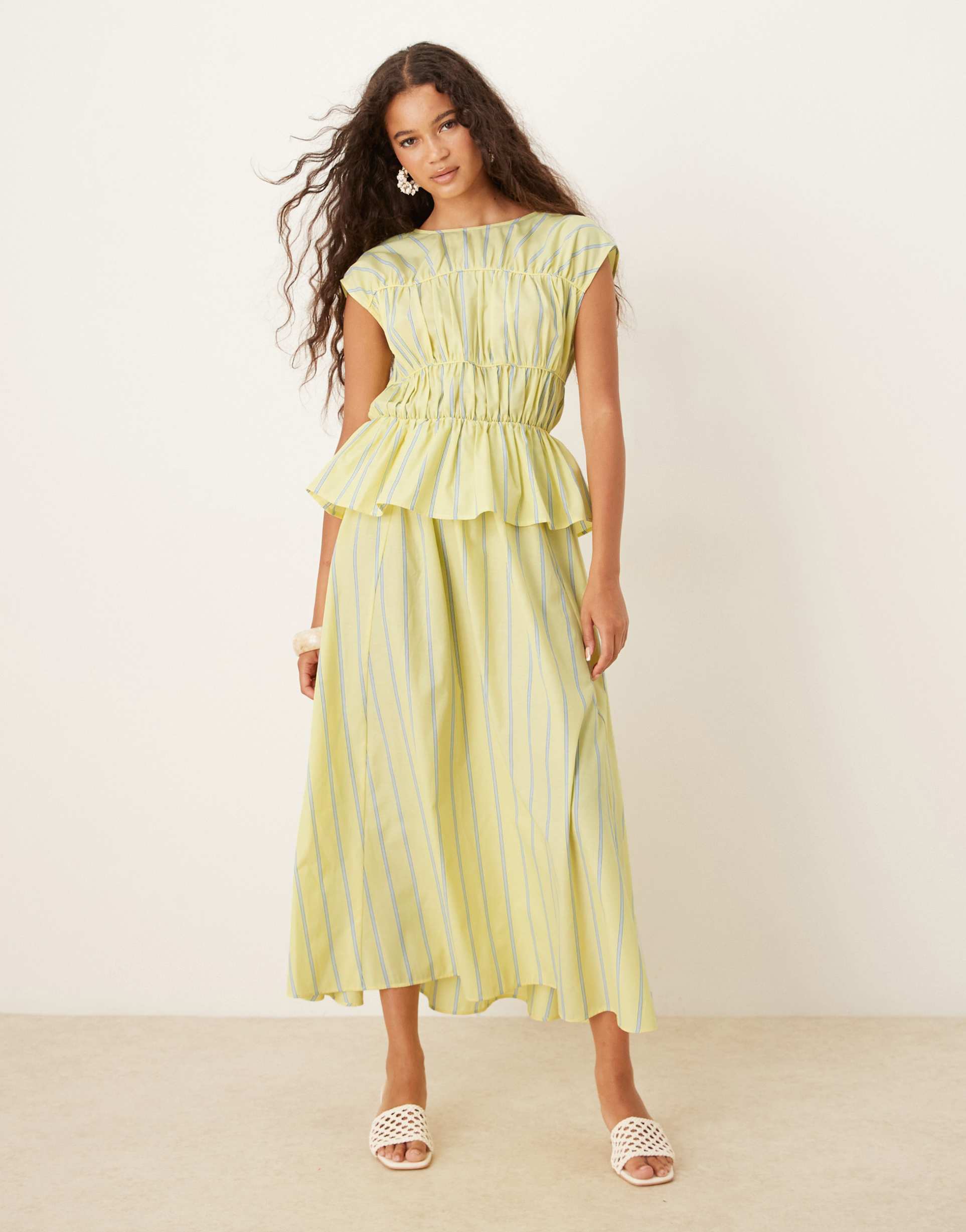 ASOS DESIGN RUCHED PANELLED MIDI DRESS IN YELLOW STRIPE