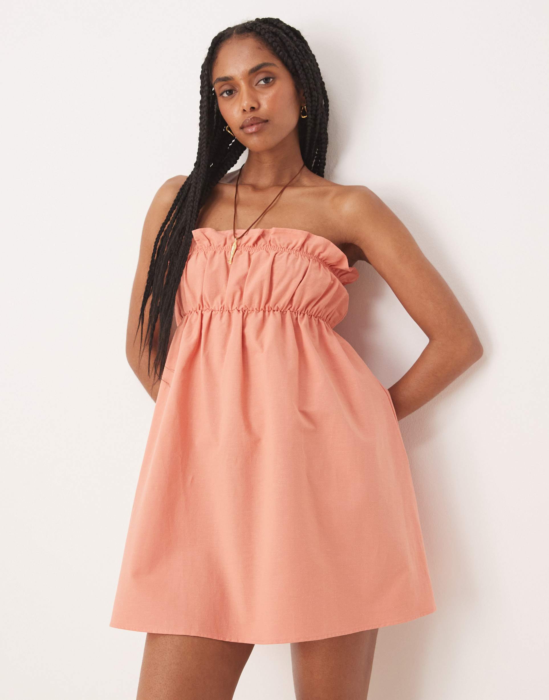 ASOS DESIGN RUFFLE BUST MINI DRESS IN WASHED PEACH