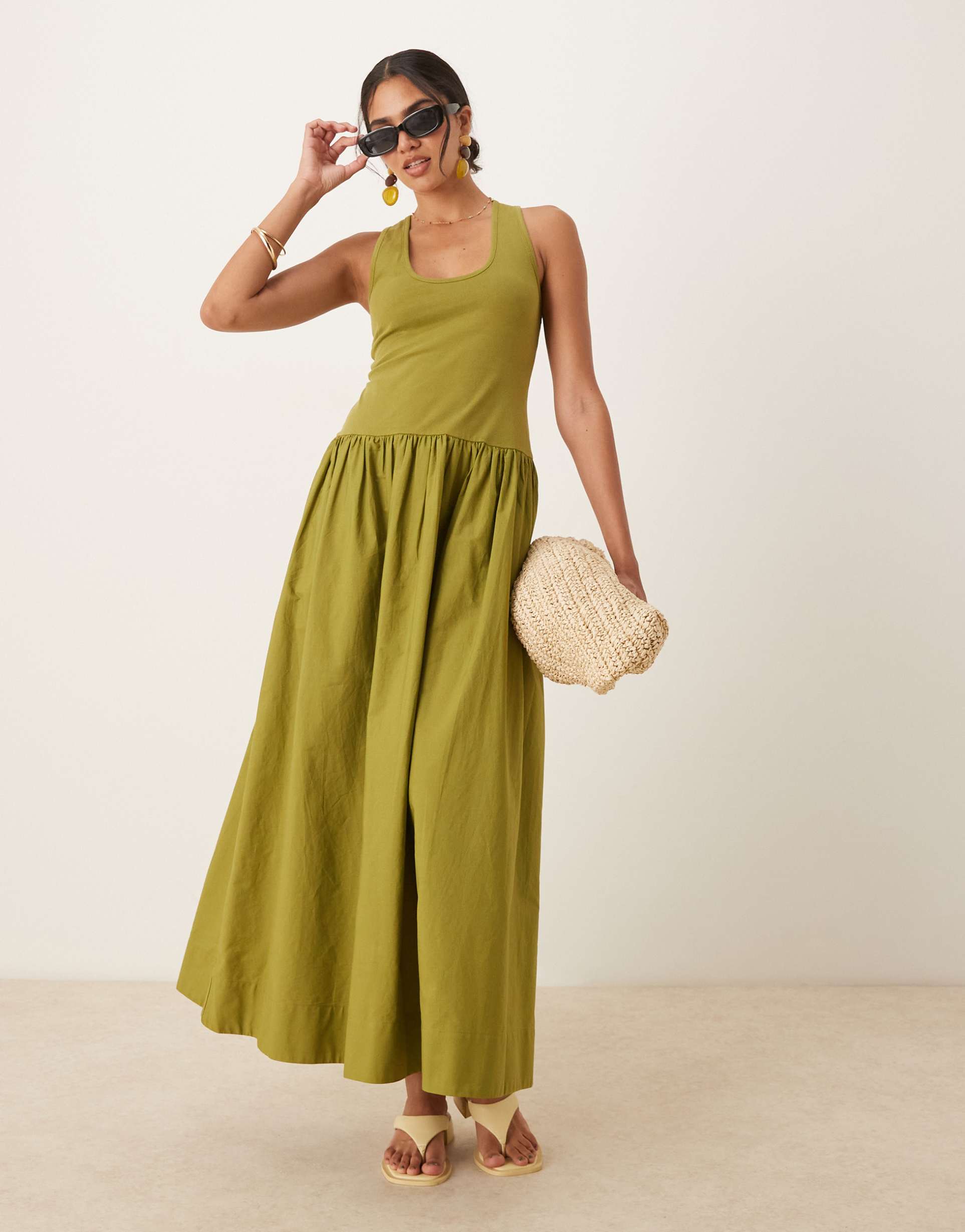 ASOS DESIGN SCOOP NECK HYBRID MAXI DRESS IN TONAL OLIVE