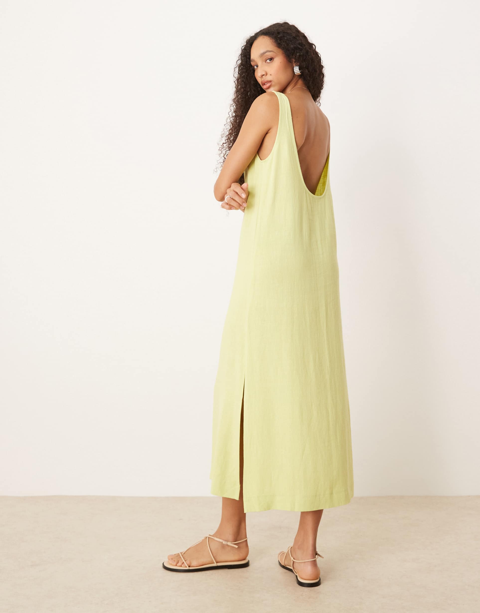 ASOS DESIGN SCOOP NECK LINEN MIX MIDI DRESS IN WASHED LIME