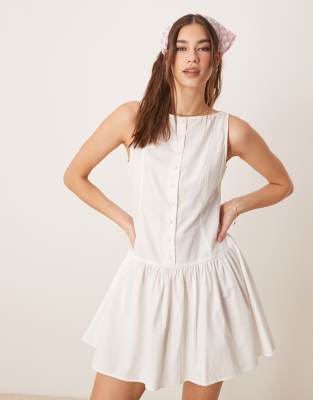 ASOS DESIGN SLASH NECK BUTTON DOWN DROPPED WAIST MINI DRESS IN WHITE
