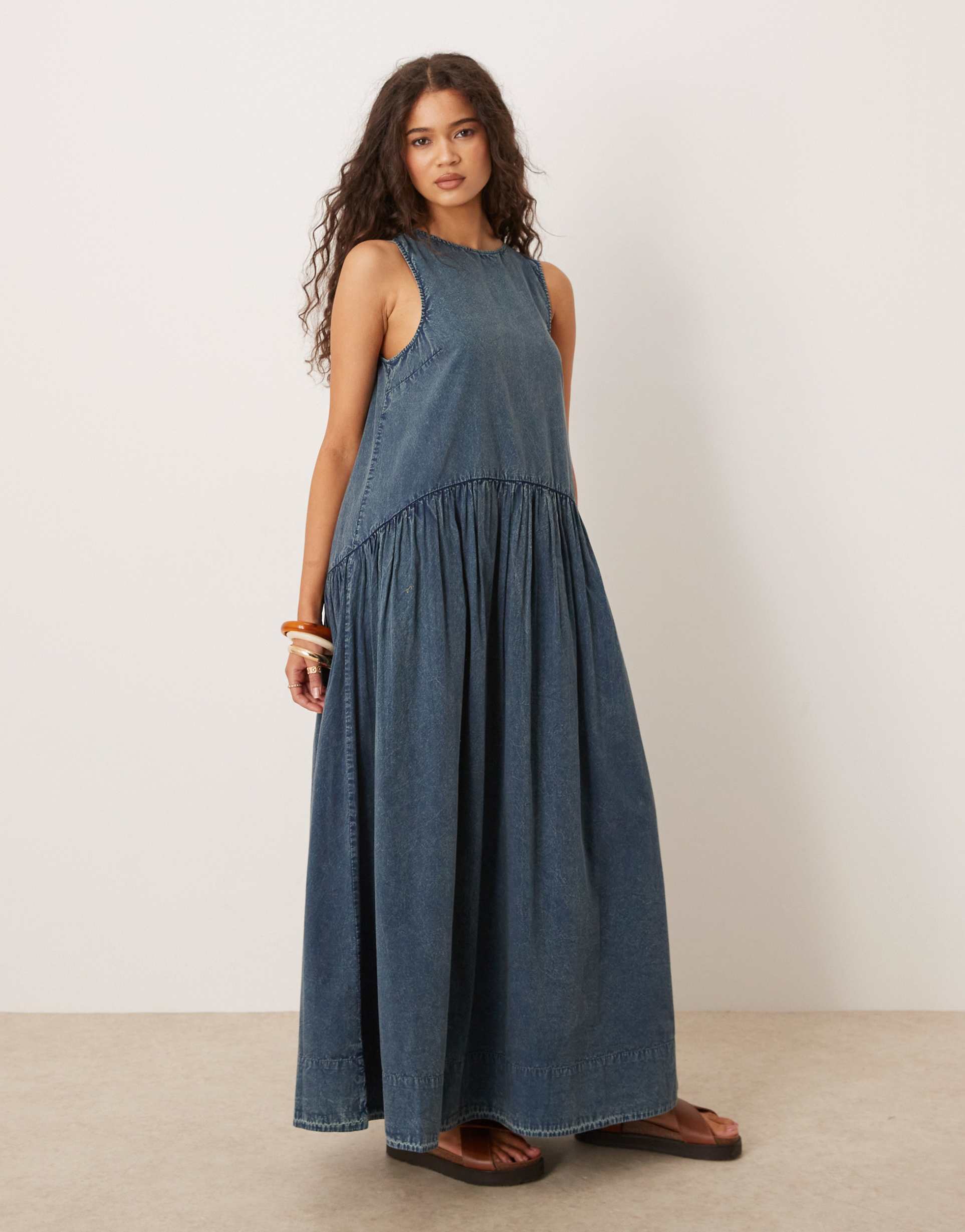 washed blue midi dress