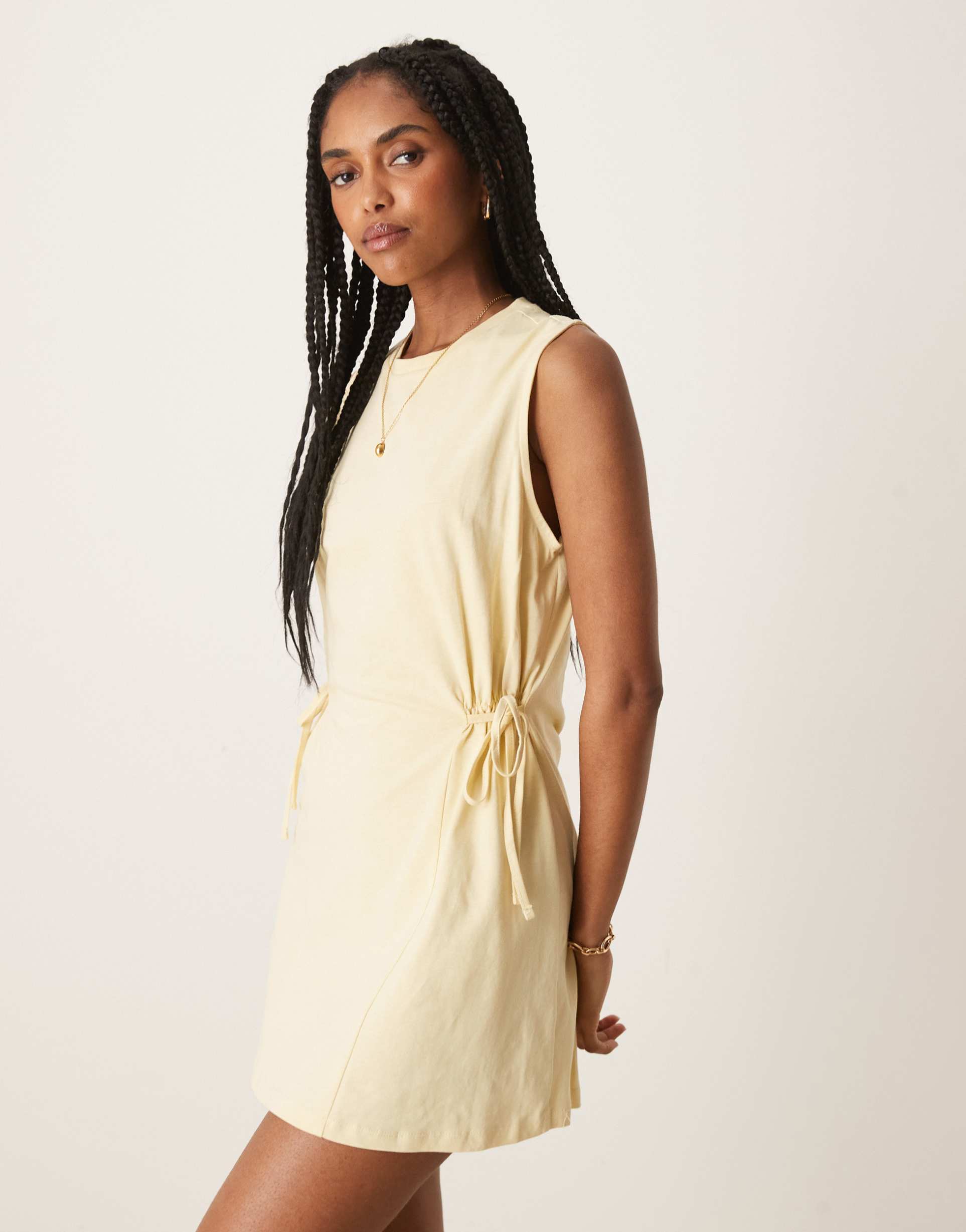 ASOS DESIGN SLEEVELESS CINCHED MINI DRESS IN LEMON