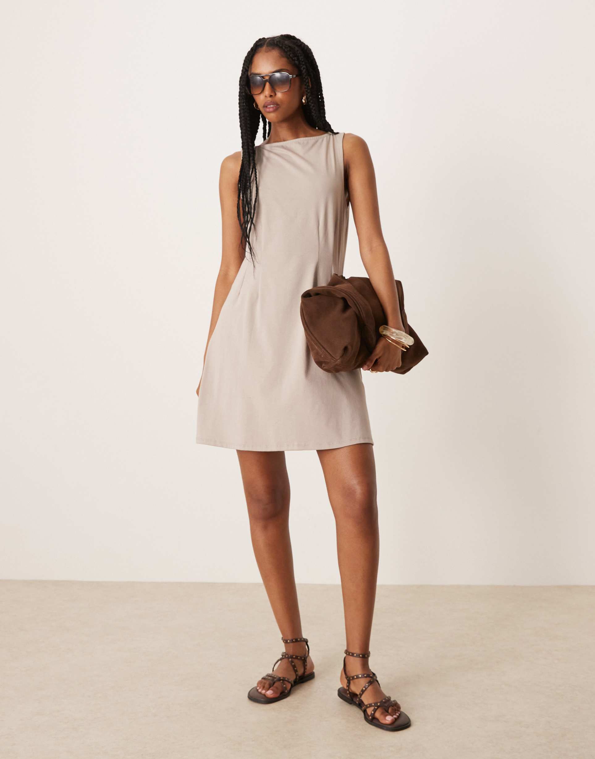 ASOS DESIGN SLEEVELESS SEAM DETAILS MINI DRESS IN MUSHROOM