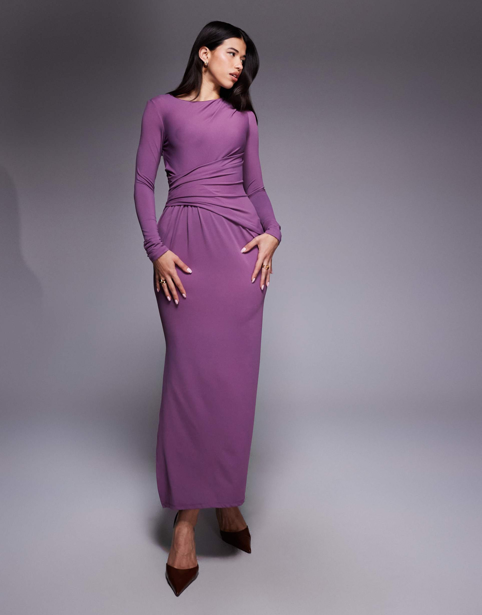 ASOS DESIGN SOFT TOUCH LONG SLEEVE DRAPE MAXI DRESS IN GRAPE