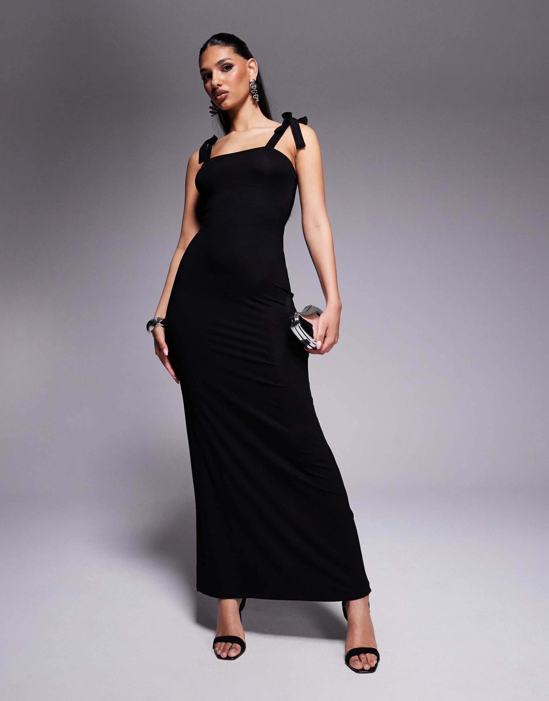 ASOS DESIGN SQUARE NECK KNOTTED STRAP DETAIL MAXI DRESS IN BLACK