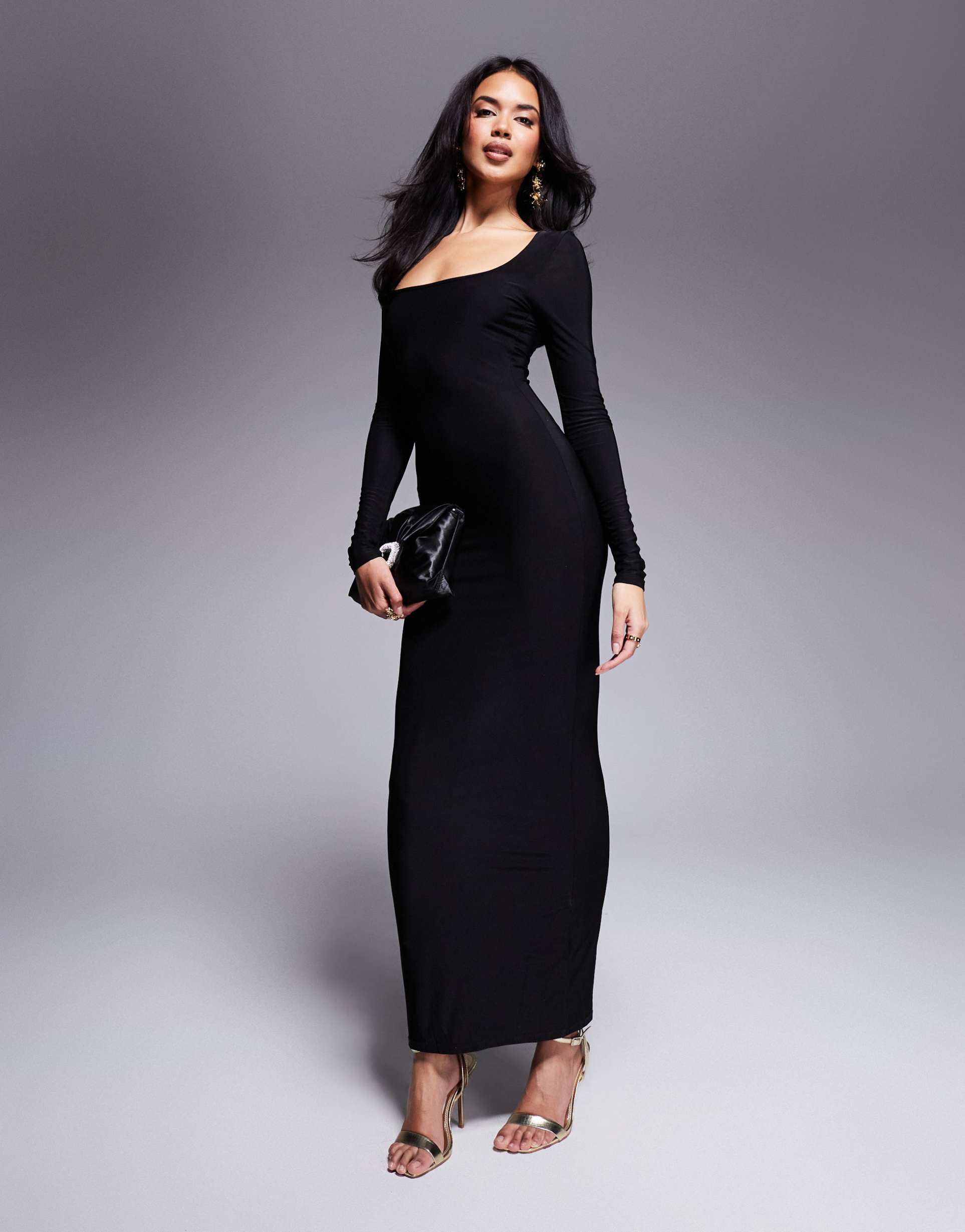 ASOS DESIGN SQUARE NECK LONG SLEEVE SLINKY MAXI DRESS IN BLACK