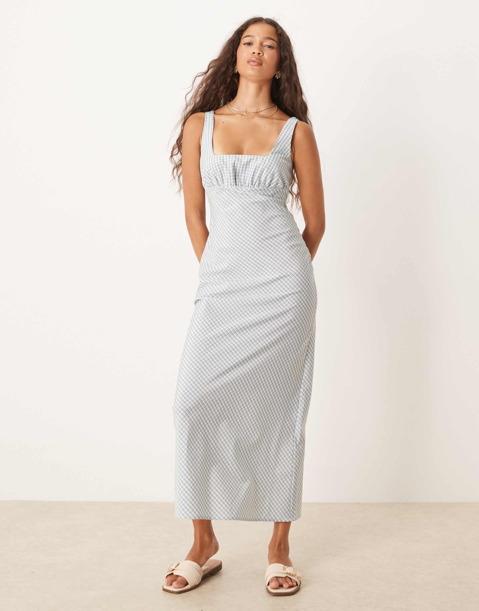 ASOS DESIGN SQUARE NECK MIDI DRESS IN GREEN PLAID