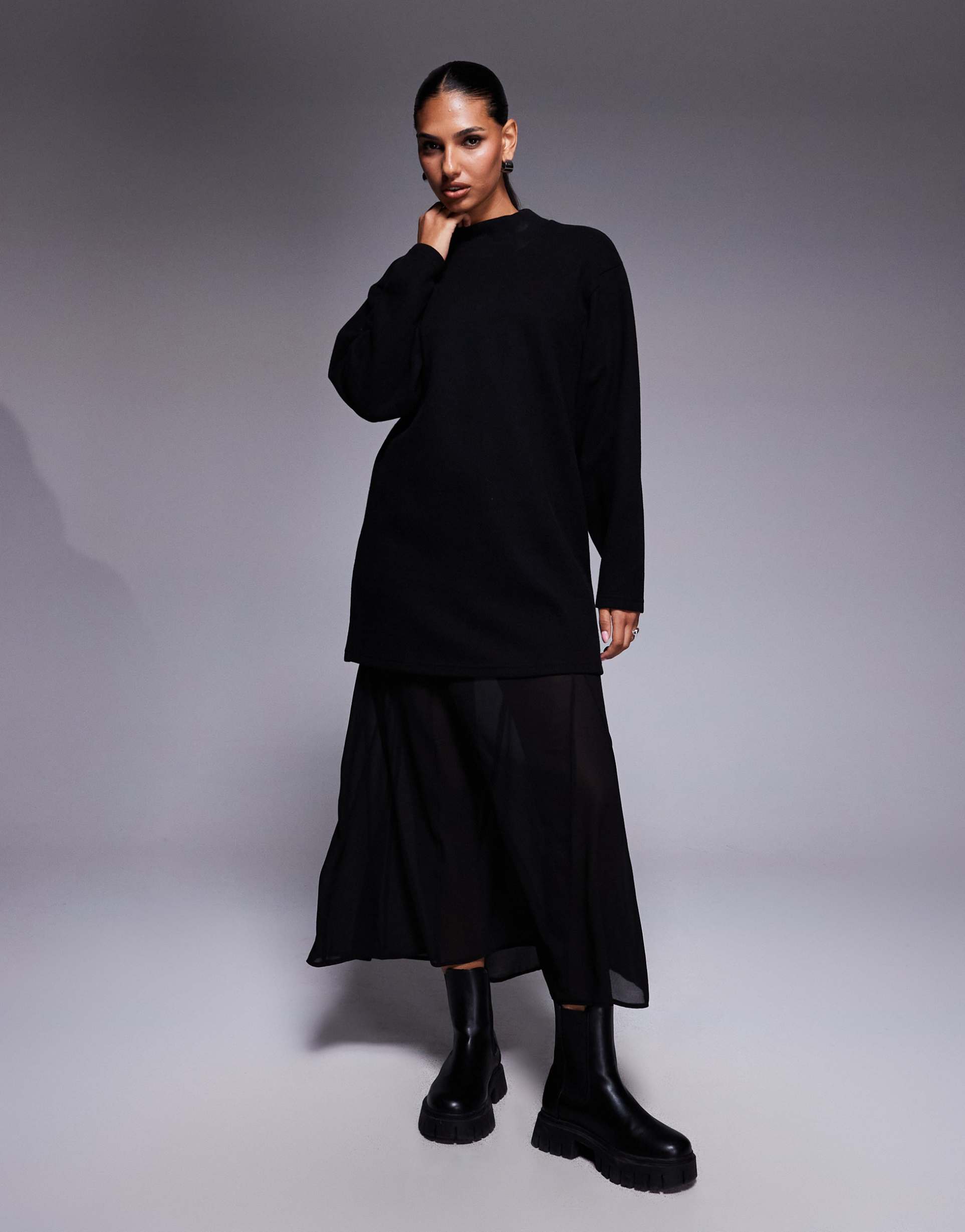 ASOS DESIGN SUPER SOFT 2-IN-1 MAXI DRESS WITH GODET CHIFFON SKIRT IN BLACK