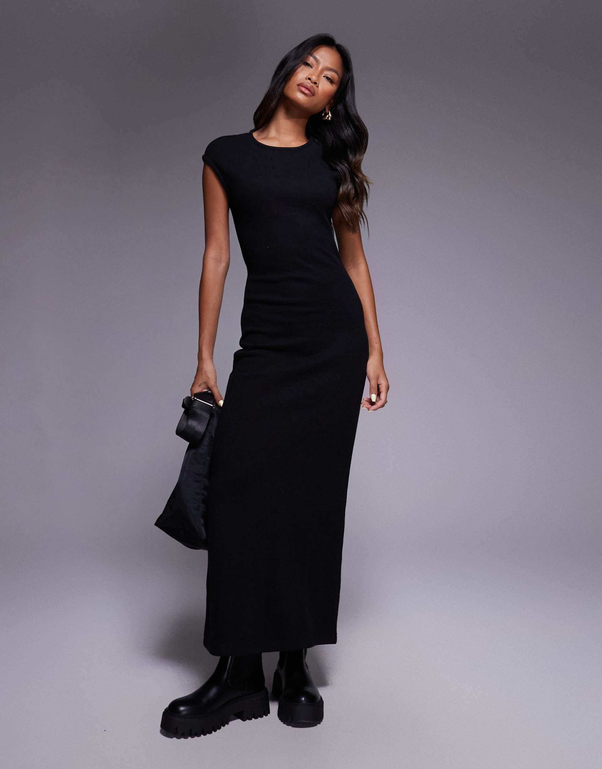ASOS DESIGN SUPERSOFT CAP SLEEVE COLUMN MAXI DRESS IN BLACK