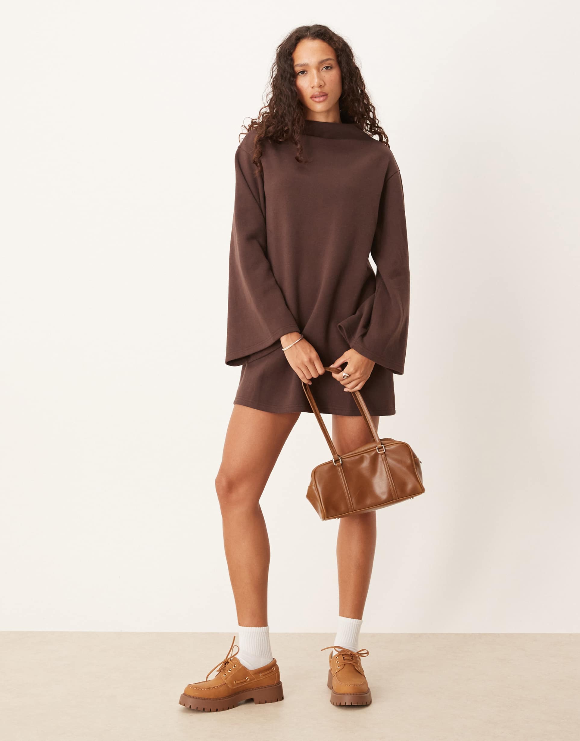 ASOS DESIGN SUPERSOFT WIDE SLEEVE MINI DRESS IN CHOCOLATE