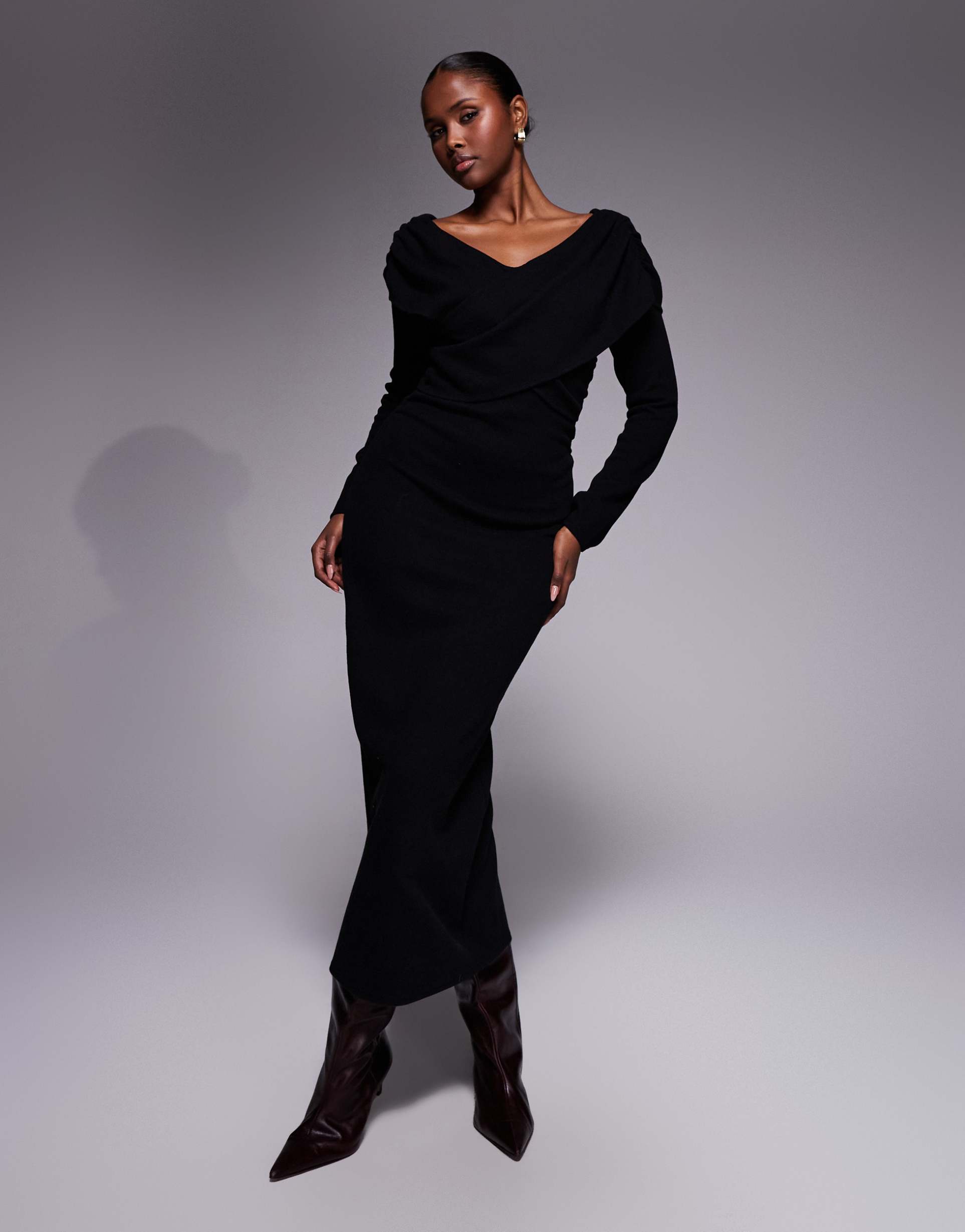 ASOS DESIGN SUPERSOFT WRAP FRONT MIDI DRESS IN BLACK