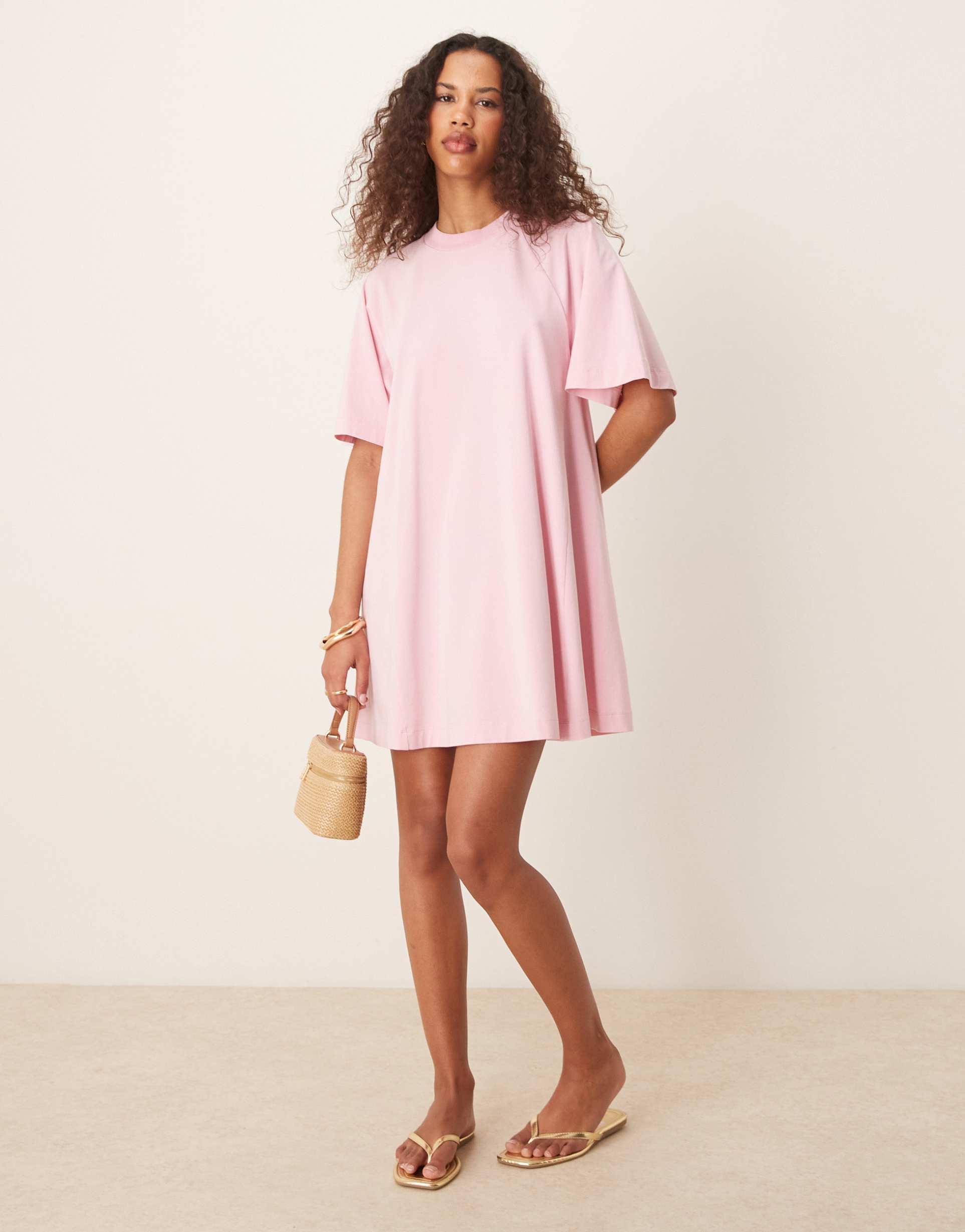 ASOS DESIGN T-SHIRT SWING MINI DRESS IN WASHED PINK