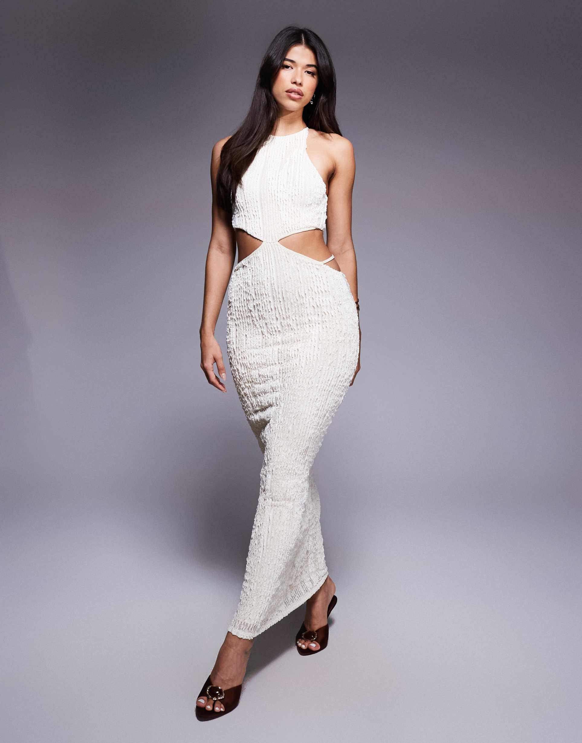 ASOS DESIGN TEXTURED MAXI DRESS WITH CUT OUTS IN STONE