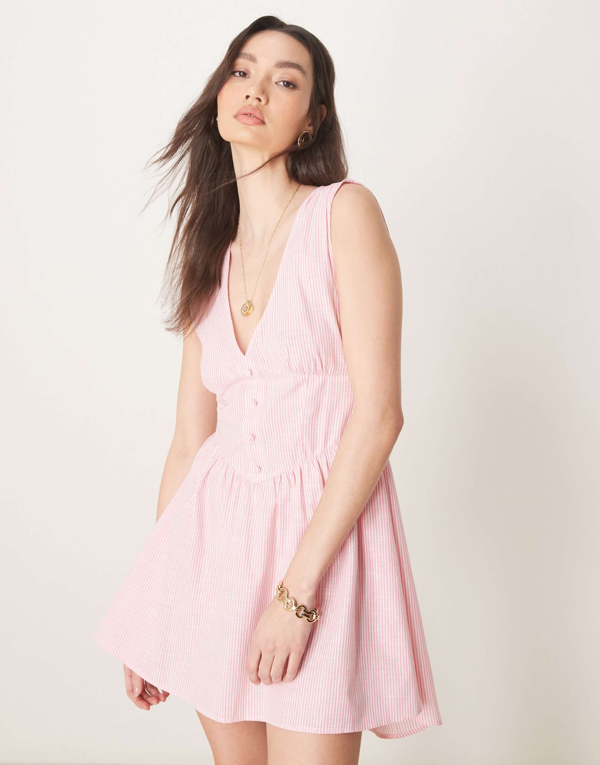 ASOS DESIGN V NECK WAISTED BUTTON DOWN MINI DRESS IN STRIPE