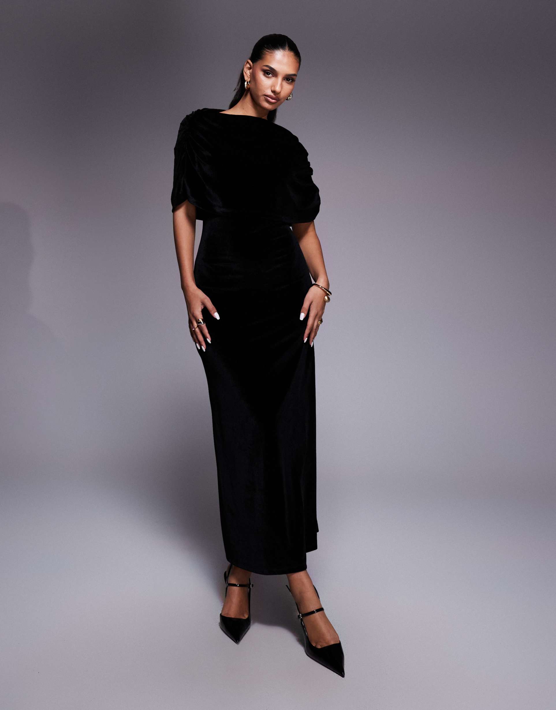 ASOS DESIGN VELVET CAPE MAXI DRESS IN BLACK