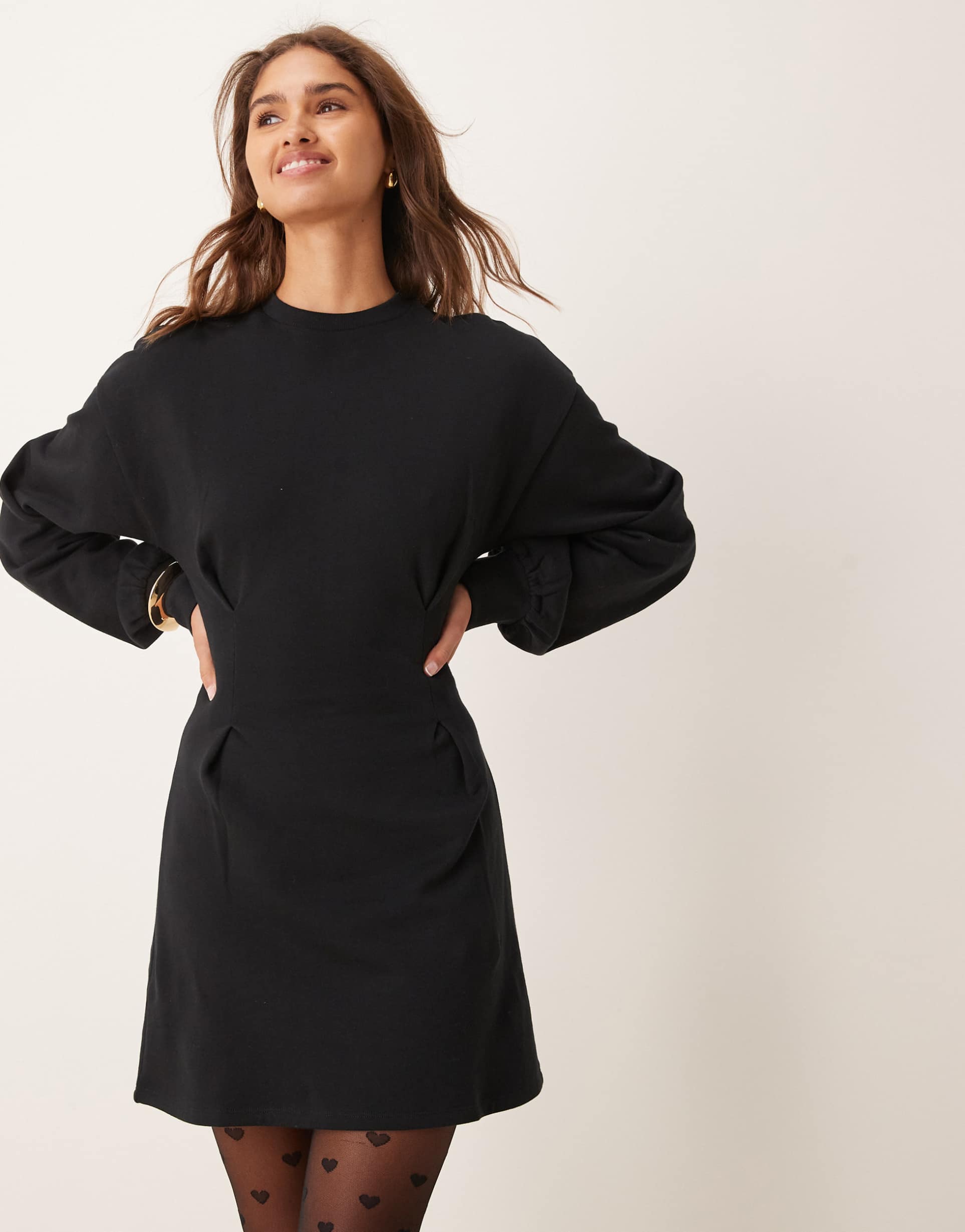 ASOS DESIGN WAISTED SWEAT MINI DRESS IN BLACK