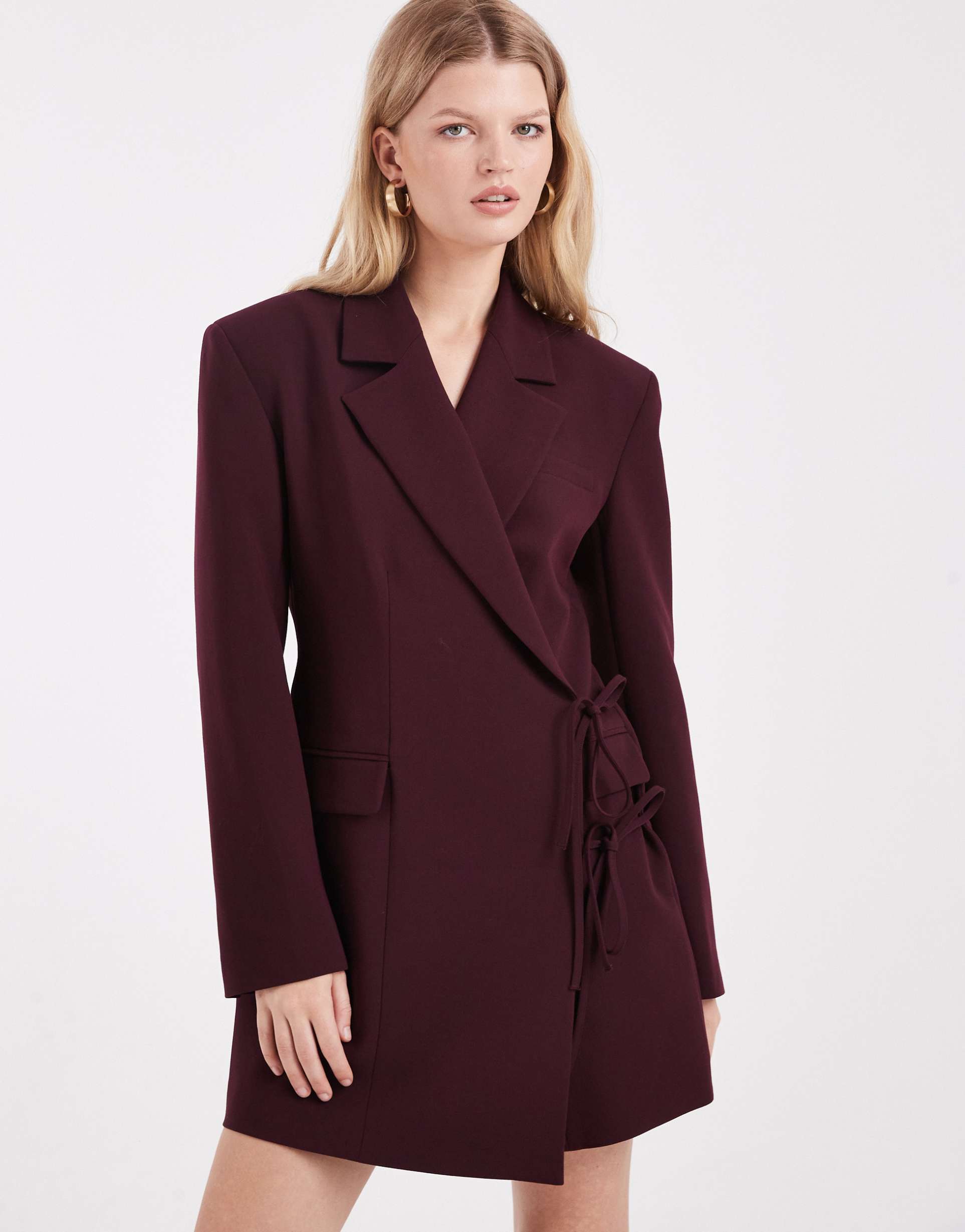 ASOS DESIGN WRAP FRONT BLAZER DRESS WITH TIE SIDE IN PLUM