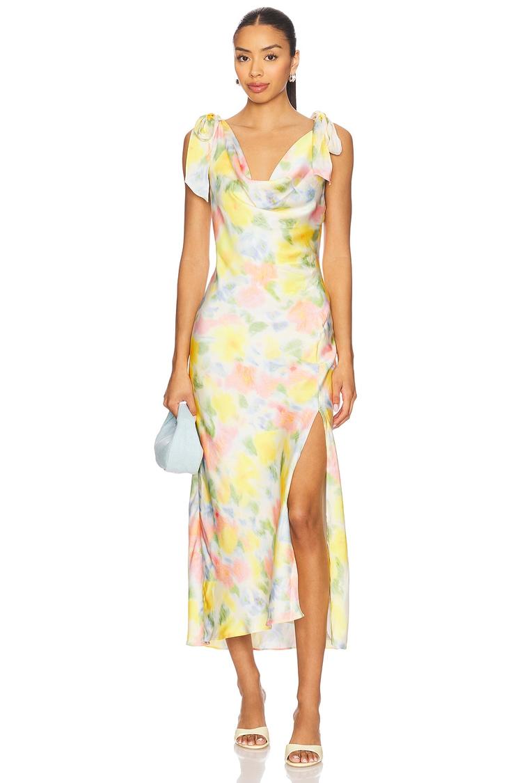 Soft satin and a figure-skimming silhouette create a romantic vibe in this midi slip dress. The draped neckline and tie shoulder straps add delicate elegance, while a plunging back and side slit inject subtle sensuality. Crafted from midweight floral satin polyester, it combines comfort with a smooth sheen. Ideal for spring and summer occasions, this fitted dress shines at brunch, date nights, and cocktail parties, offering effortless sophistication with every wear.