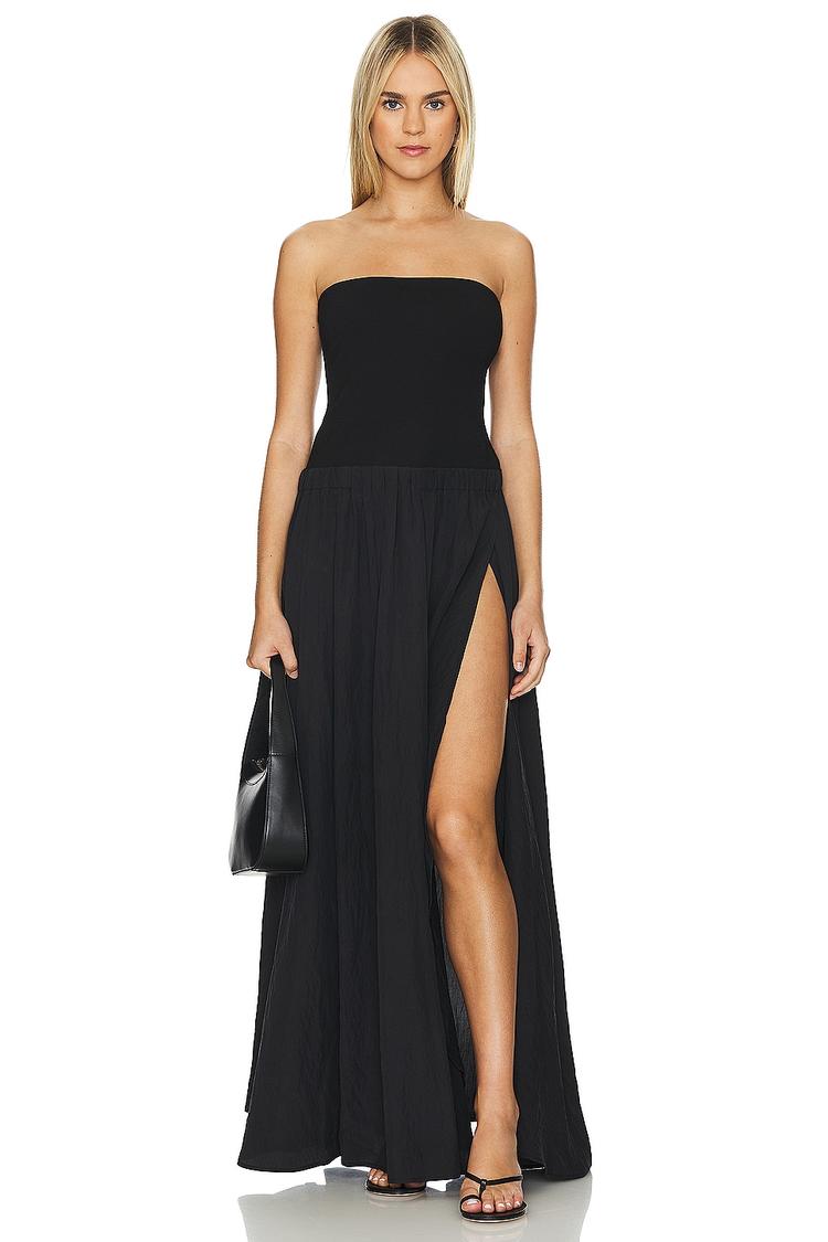 black strapless maxi dress