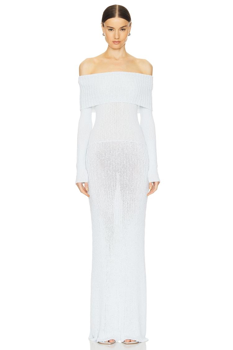 Softly embracing the figure, this slim-fit column maxi dress boasts a clean white hue and an elegant off-shoulder foldover neckline. Crafted from a stretchy knit blend of viscose and nylon, it offers both comfort and sophistication. The long sleeves and covered back enhance its sleek silhouette, making it ideal for cocktail evenings, date nights, or stylish night outs. Its pull-on styling ensures effortless wear, while the refined minimalist design makes it a timeless addition to any wardrobe.