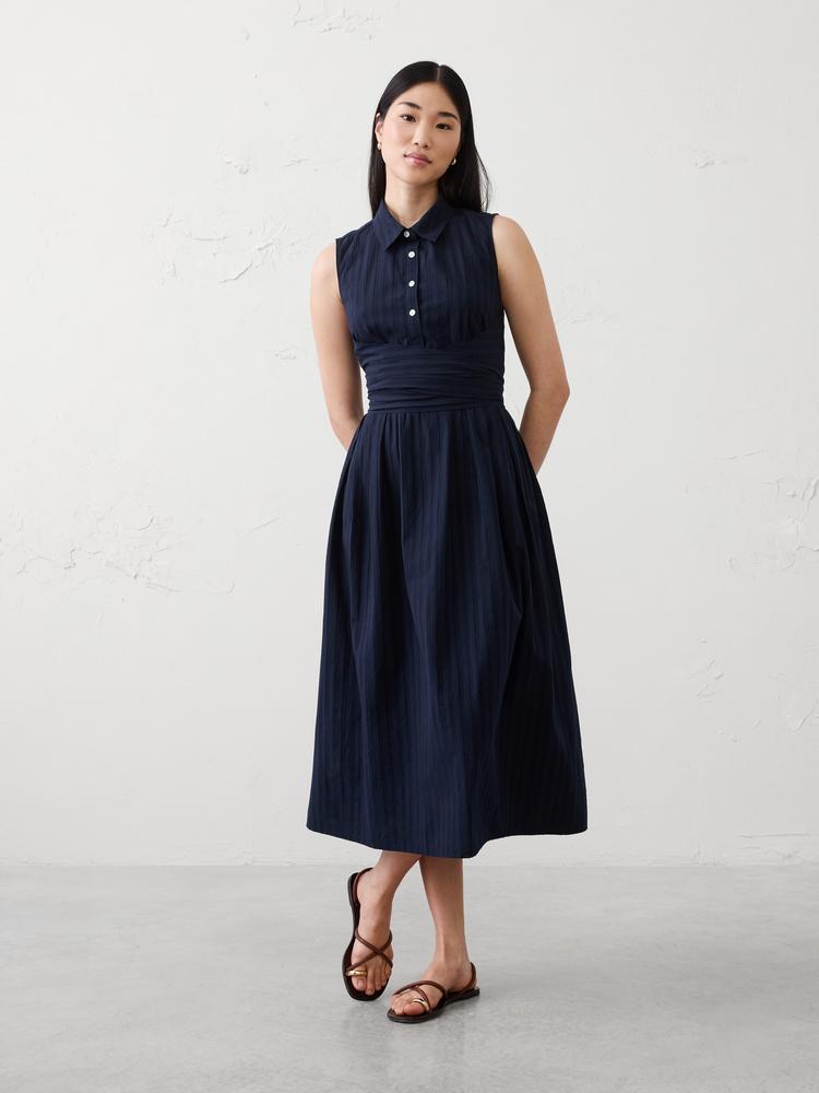 POPLIN WRAPPED MIDI SHIRTDRESS