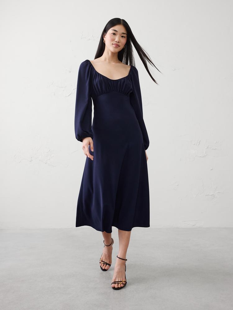 SHIRRED BODICE MIDI DRESS